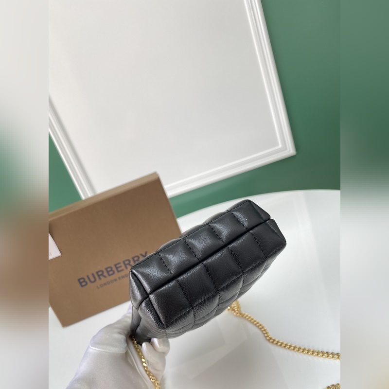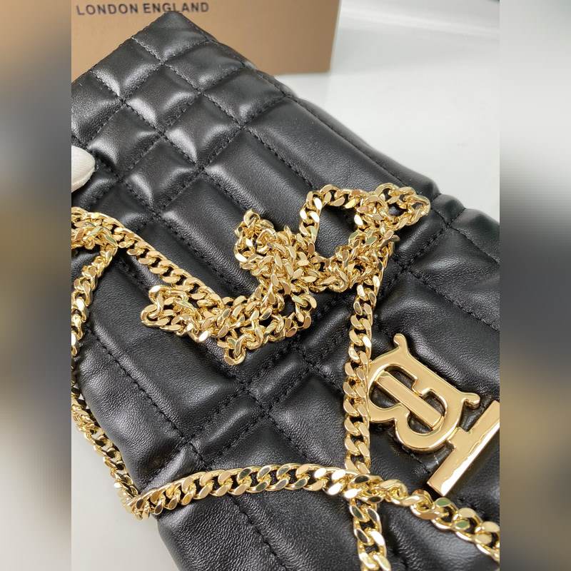 버버리의 최신 퀼팅 패션쇼 모델 롤라 - 롤라 백 이탈리아산 양가죽으로 만들어졌으며 토마스 버버리만의 로고로 장식되어 있고 아름다운 체인 스트랩이 함께 제공됩니다. 16 x 4 x 20cm 아이템 번호: YK9618900