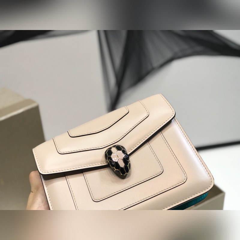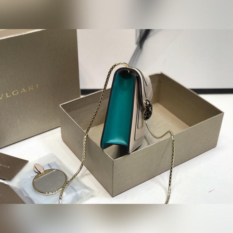 불가리 체인 백 20cm 싱글 레이어 새로운 세르펜트 포에버 뱀 머리 가방이 출시되었습니다. 모델 번호: B283558 수입 이탈리아 송아지 가죽 라이트 골드 도금 황동 클래식 뱀 머리 버클 밀키 오팔과 블랙 에나멜로 장식된 악센트 블랙 오닉스 눈 색상 조합은 불가리의 독특한 특징을 완벽하게 해석하는 대담한 색상 조합입니다. 크기: 20*14*4.5cm 번호: SD96181150