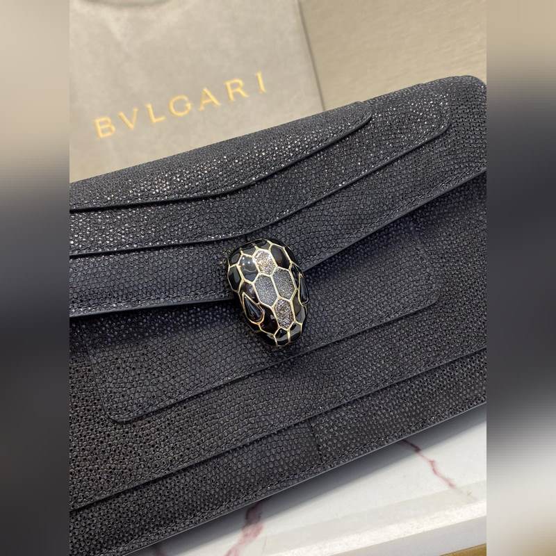 불가리 체인백 새로운 스네이크 스킨 시리즈 모델 번호: B286167 수입 뱀 가죽 양가죽 안감 맞춤형 하드웨어 최신 유행의 반짝이는 라이트 골드 도금 뱀 머리 모양의 걸쇠 검은색 돌이 박힌 눈. 우아한 디자인일 뿐 아니라 야생의 자연스러움도 보여줍니다. 금속 로고는 위조 방지 라벨이 레이저로 새겨져 있으며 가방 안쪽에는 전용 모델 번호 코드가 인쇄되어 있습니다. 최신 구성도 이용 가능합니다. 크기: 24x13x3cm 번호: SD96181350