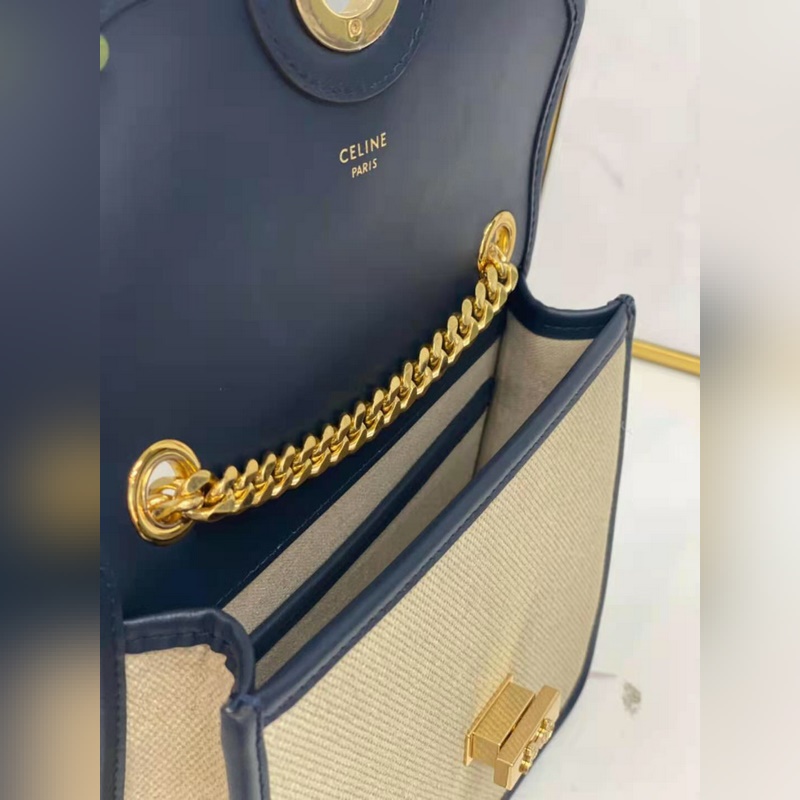셀린느 데님 및 가죽 핸드백 크로스바디 백 천 양가죽 트림 천 안감 숄더백 캐리지 모티브의 회전식 걸쇠 잠금장치 메인 수납공간 1개 내부 플랫 포켓 1개 맞춤형 하드웨어 체인 제품 번호: CL6942 크기: 18+15+6cm [오리지널 선물 포함 No.: SD96181100