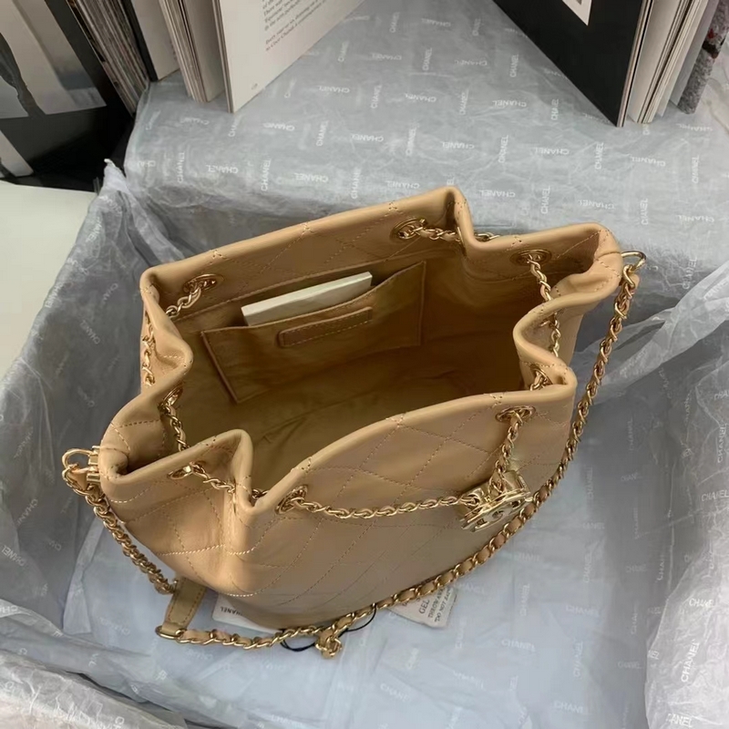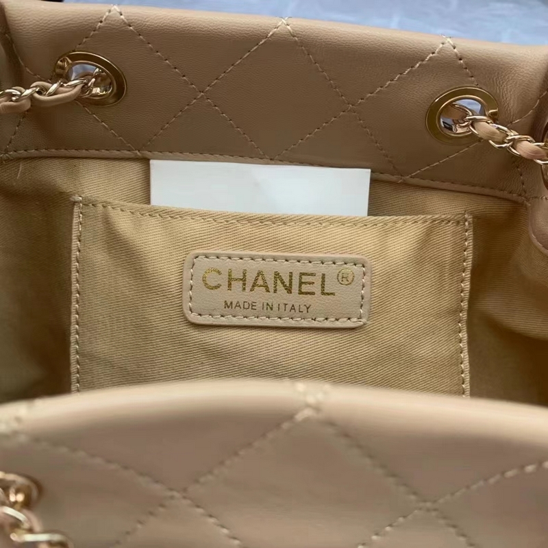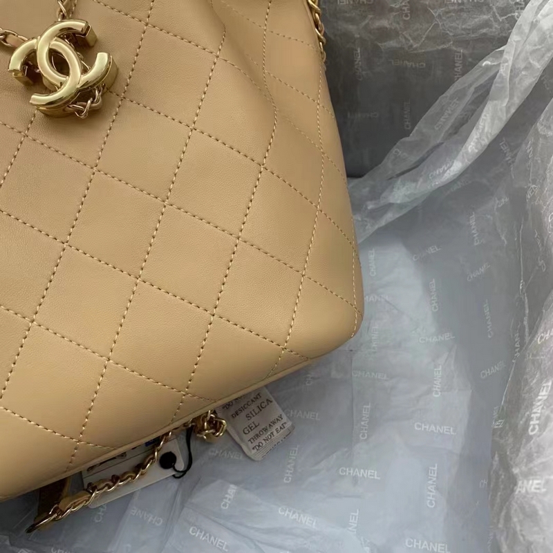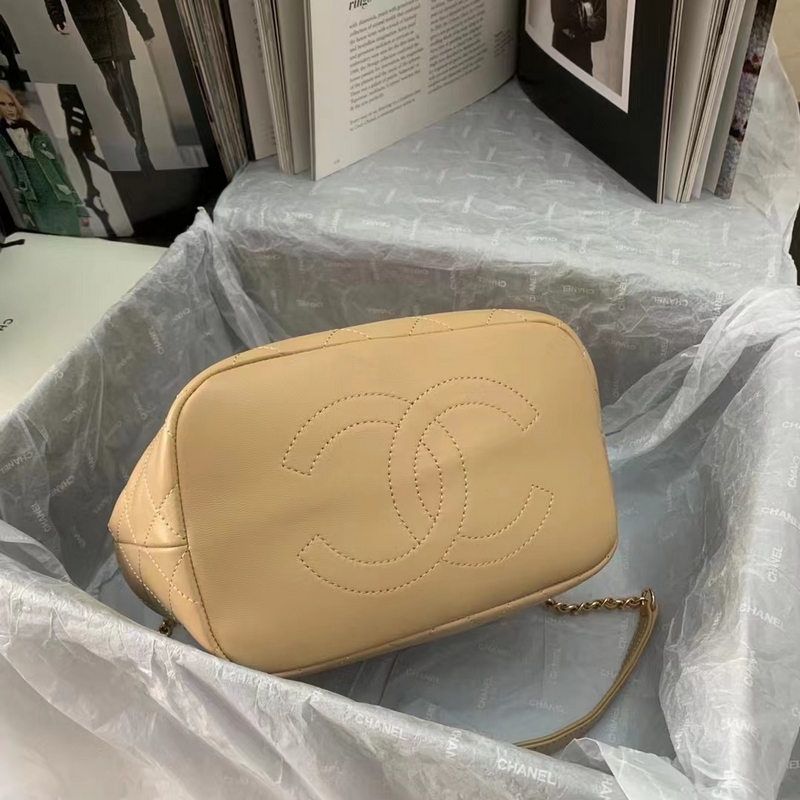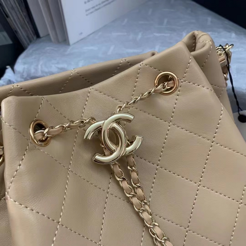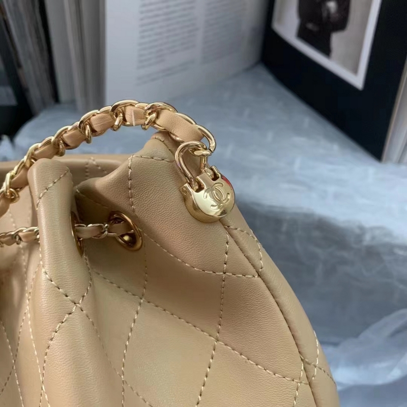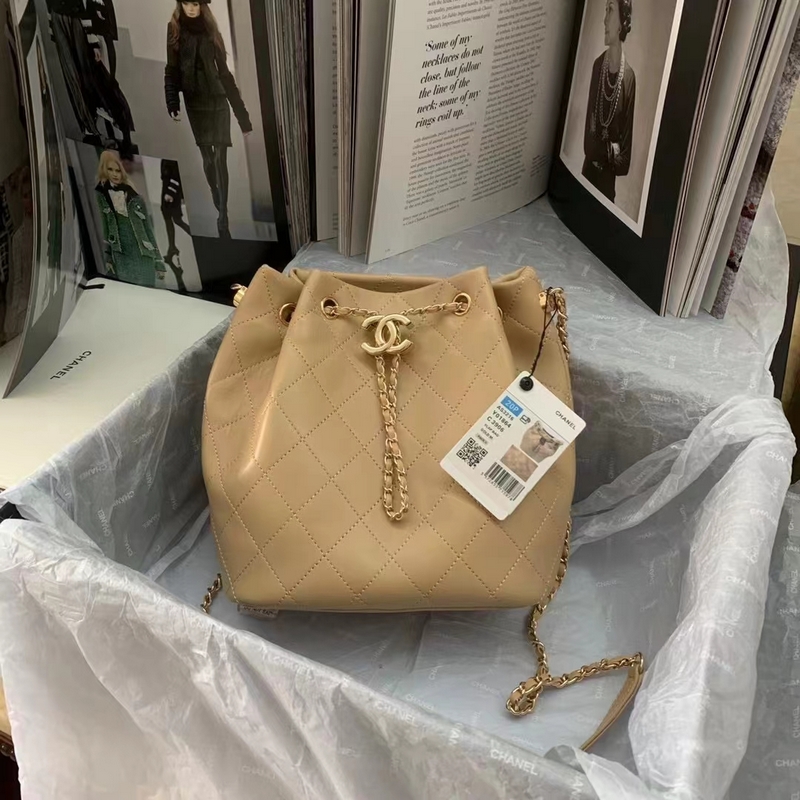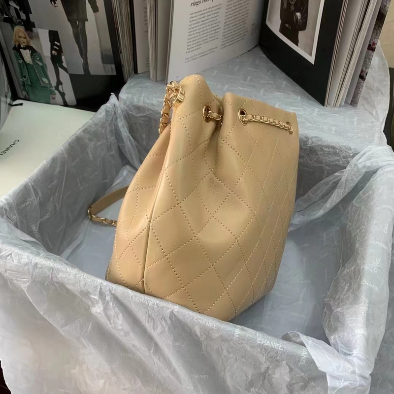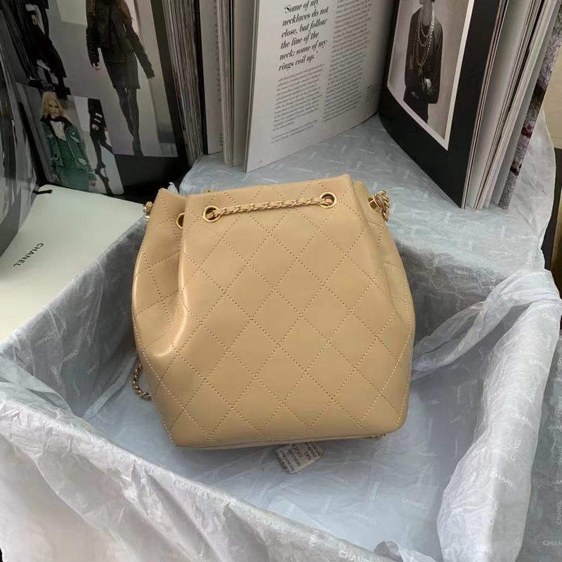 C 최신 런웨이 모델은 귀여운 드로스트링 버킷백입니다. 양가죽의 질감이