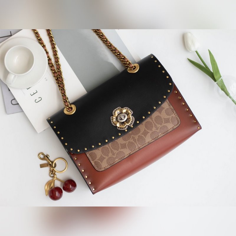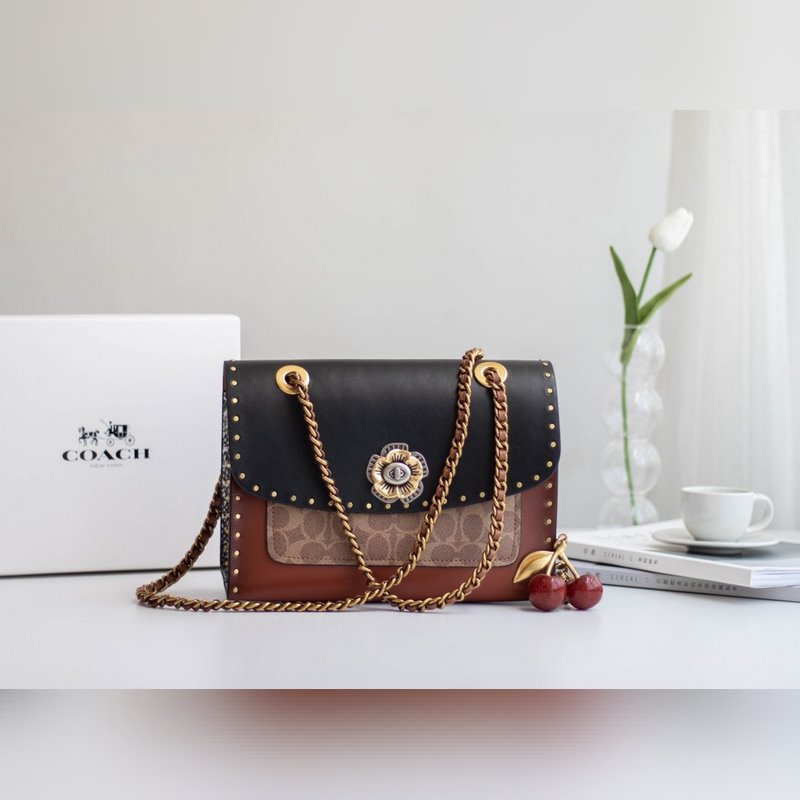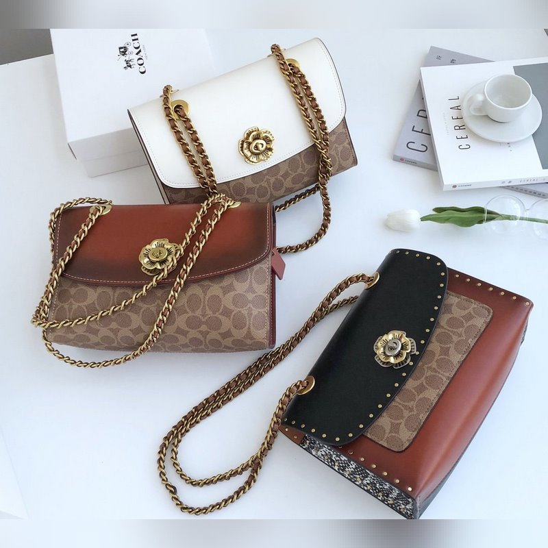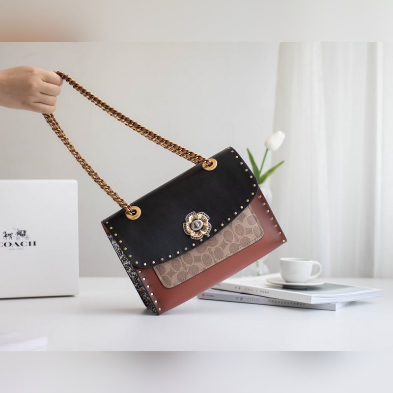 파커 코치 여성용 가방 29416 스네이크 스킨 패턴 체인 스트라이프 가방 빈티지한 느낌의 최고급 소가죽을 수입하여 부드러운 촉감 시장성 있는 2층 구조나 극세사 소재가 아닌 가방 가장자리에 압축된 선 대비되는 안감 환영 크기: 26*18*10cm 번호: SM9618760