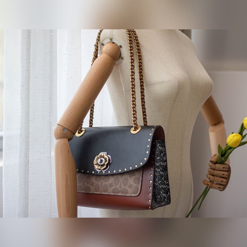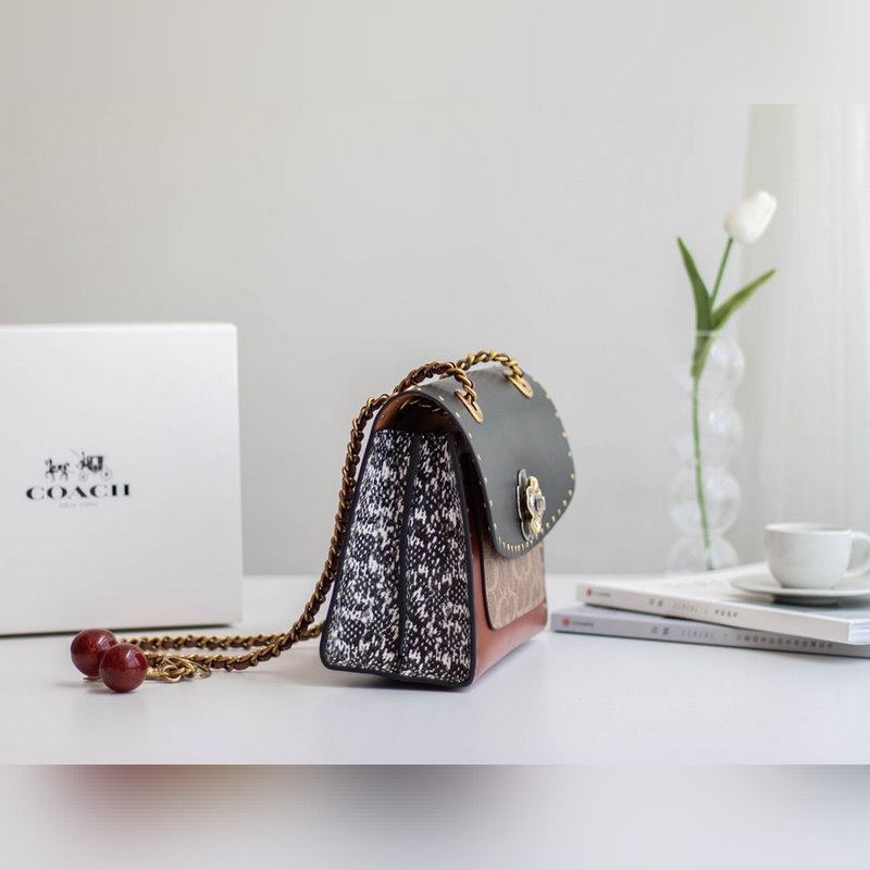 파커 코치 여성용 가방 29416 스네이크 스킨 패턴 체인 스트라이프 가