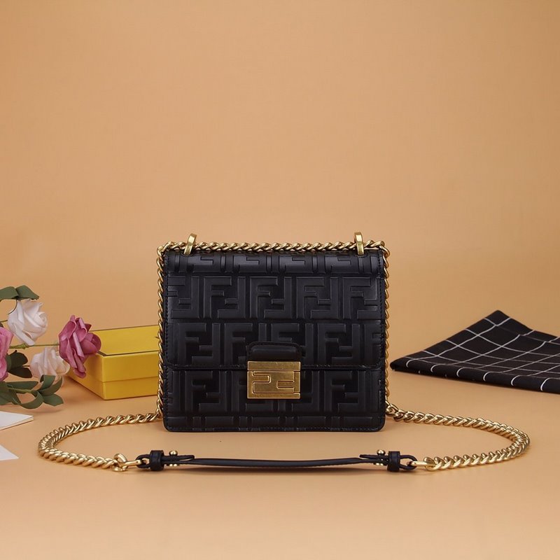 FENDI 체인 파우치 모델: 8840 검은색 엠보싱 크기: × 13 × 9 아치형 다리와 새로운 자물쇠가 있는 버전으로 업그레이드할 수 있으며 내부에는 내부 포켓 1개와 판지로 분리된 2개의 수납공간이 있습니다. 크로스바디 또는 핸드헬드 운반을 위해 탈착식 어깨끈이 제공됩니다. 본체는 소가죽으로 만들어졌으며 검은색과 대비되는 FF 패턴이 특징입니다. 플랩은 프레스 잠금 장치로 열 수 있어 편리하고 실용적입니다. 윗부분은 더욱 아름답습니다. 항목 번호: MX9618850