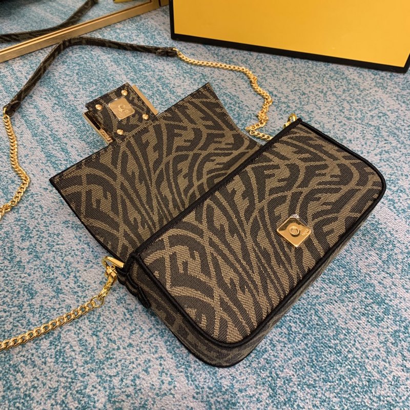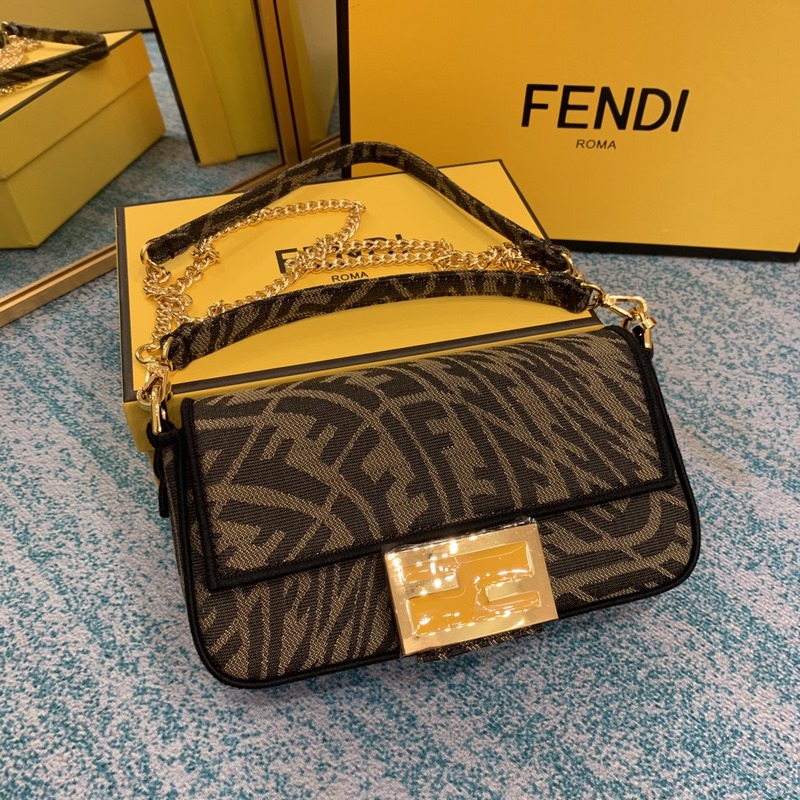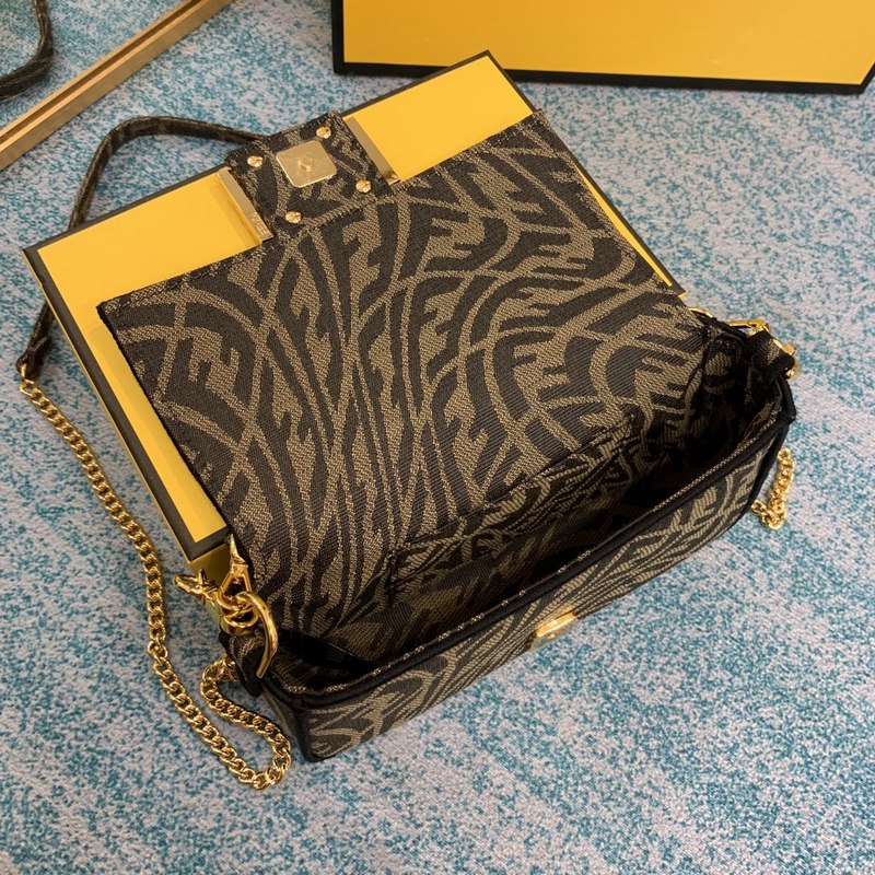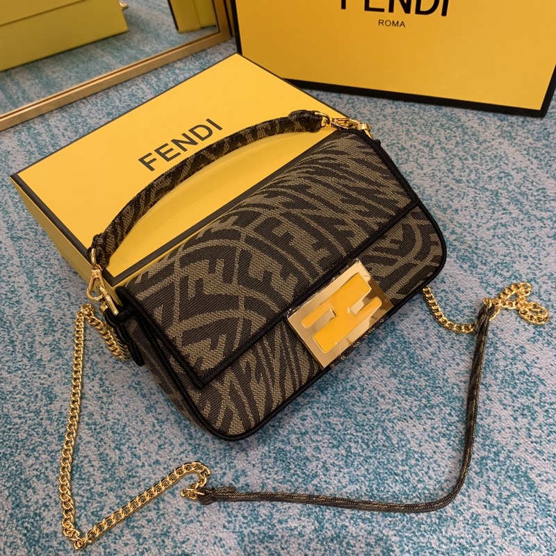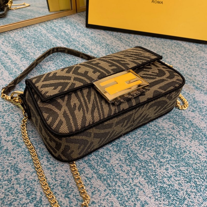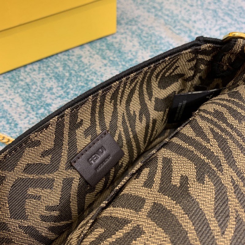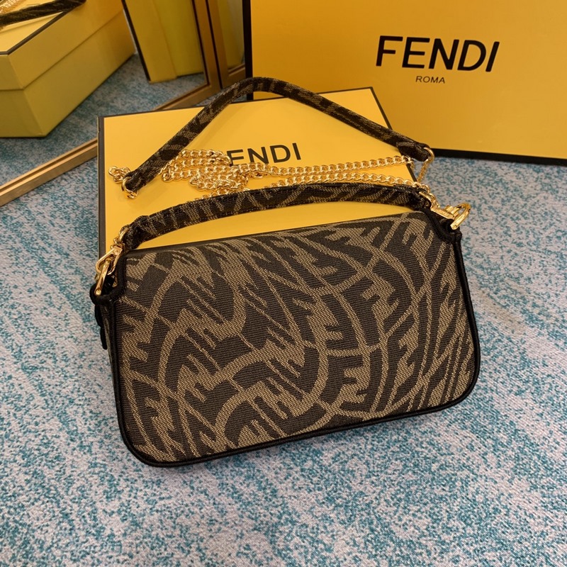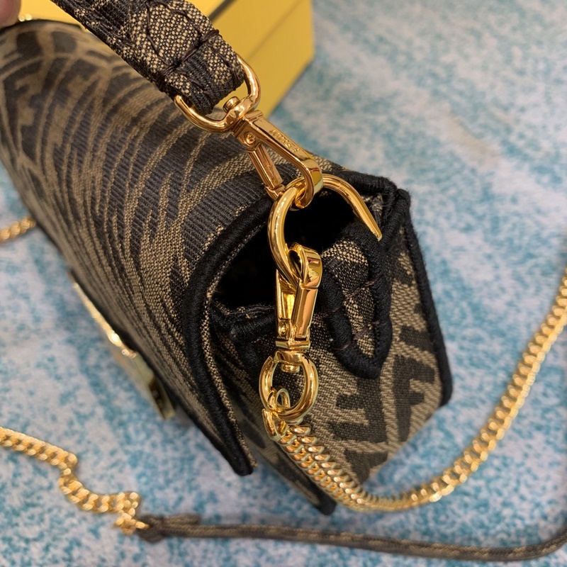 펜디 작은 캡슐 컬렉션 새로운 로고 미니 숄더백 마그네틱 스냅 버튼 잠금∩ 길이 조절이 가능한 탈착식 가죽 숄더 스트랩 블랙 실로 수놓은 큰 FF 패턴의 자카드 직물 골드색 금속 부품으로 장식한 외곽선☆제품 번호: FD8BS017 크기 18cm 품번: BD96181000