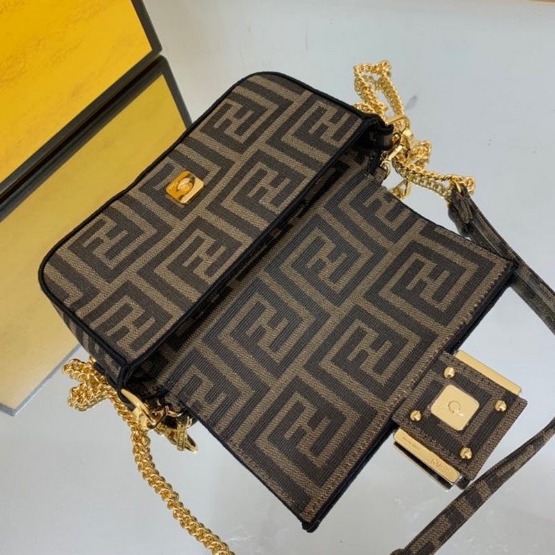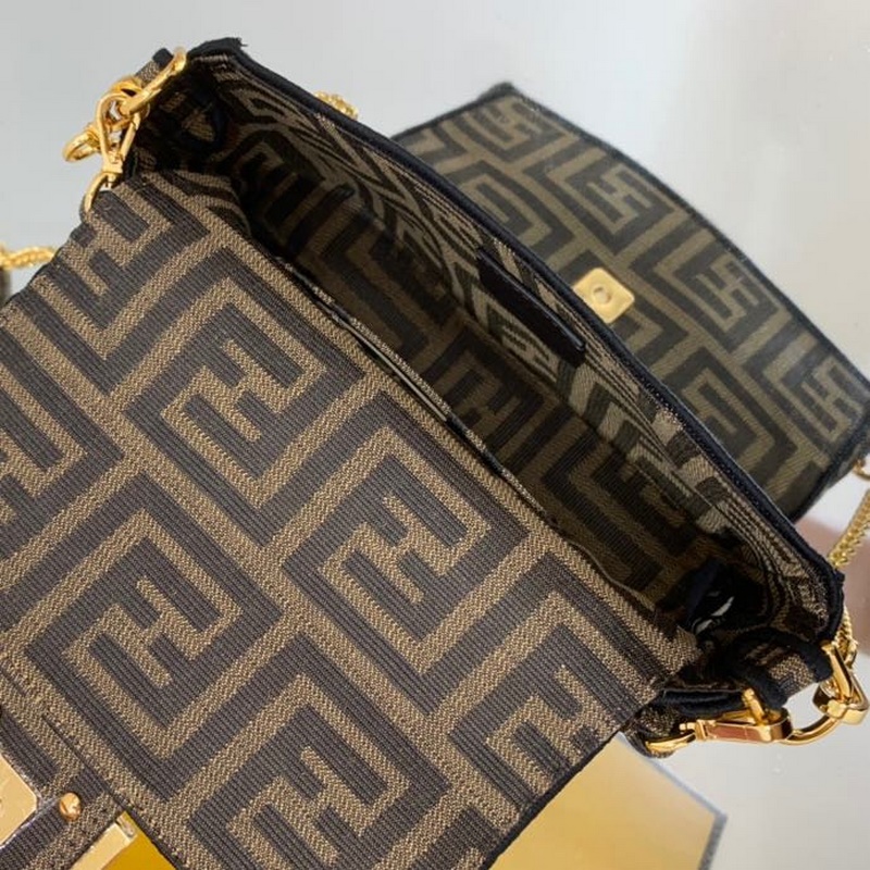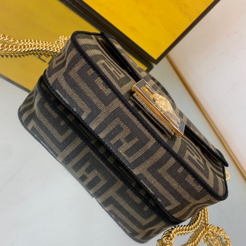 펜디 바게트빵 시리즈 상징적인 사각형 바게트 미니 핸드백은 갈색 가죽
