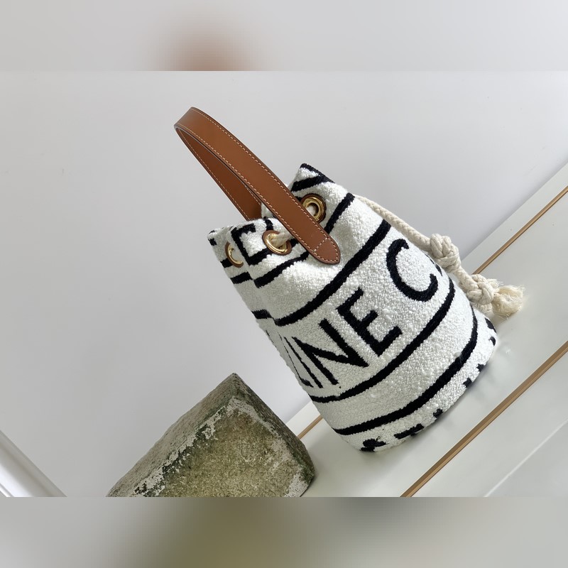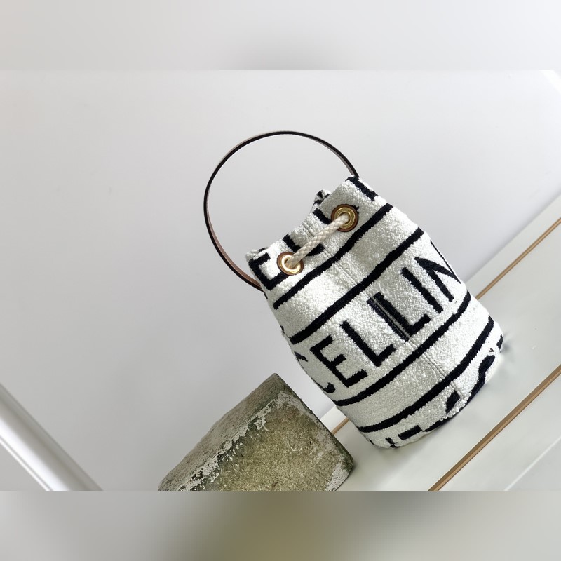 CELIN*|22s 신상 TEEN CELINE 올오버 프린트 직물 소가죽 드로스트링 백 흑백 모노그램 패브릭 드로스트링이 달린 작은 버킷 백. 귀엽고 실용적인 것을 원한다면 작은 버킷 백이 제격입니다. 실용성과 아름다움을 겸비한 귀여운 작은 가방. 복고적이고 다재다능합니다. 수납 용량: 휴대폰 지갑 선글라스 작은 우산 헤드폰 기타 등등… 여성이 일상생활에서 가지고 다니는 모든 물건을 수납할 수 있습니다. 천/소가죽 천 안감 휴대용 끈으로 조임 가죽 손잡이 길이 13cm 크기: 15 x 19 x 15cm 아이템 번호: 196532EFY.01WB