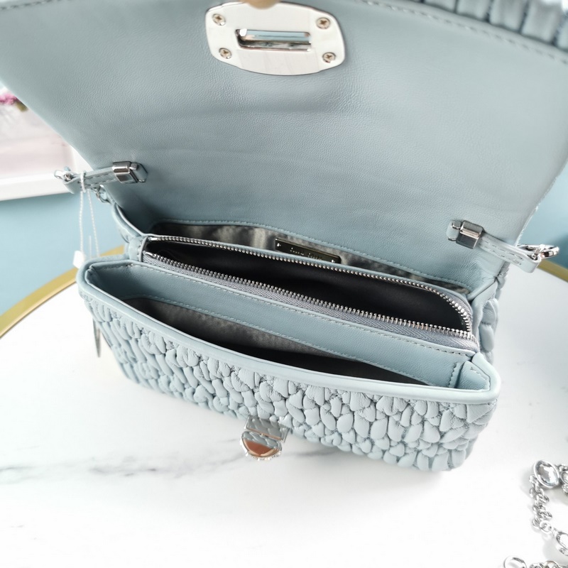 Miumiu Miumiu 스모그 블루 모델 번호: 5BH012 크리스탈 체인 백의 새로운 업그레이드 버전 최고급 수입 양가죽 소재 직조 가죽 손잡이 탈착식 크리스탈 체인 스트랩 내부에 3개의 수납공간 부드럽고 고급스러운 가죽 다이아몬드 모양의 회전식 잠금장치 뒷면에 클래식한 MiuLogo가 있는 클래식한 자카드 디자인으로 손으로 들거나 어깨에 메거나 크로스 바디로 메는 등 다양하게 활용할 수 있으며 세련된 디자인과 높은 품질을 자랑합니다. 크기: L21 H12 W5 (포장 포함) 번호: SD96181280