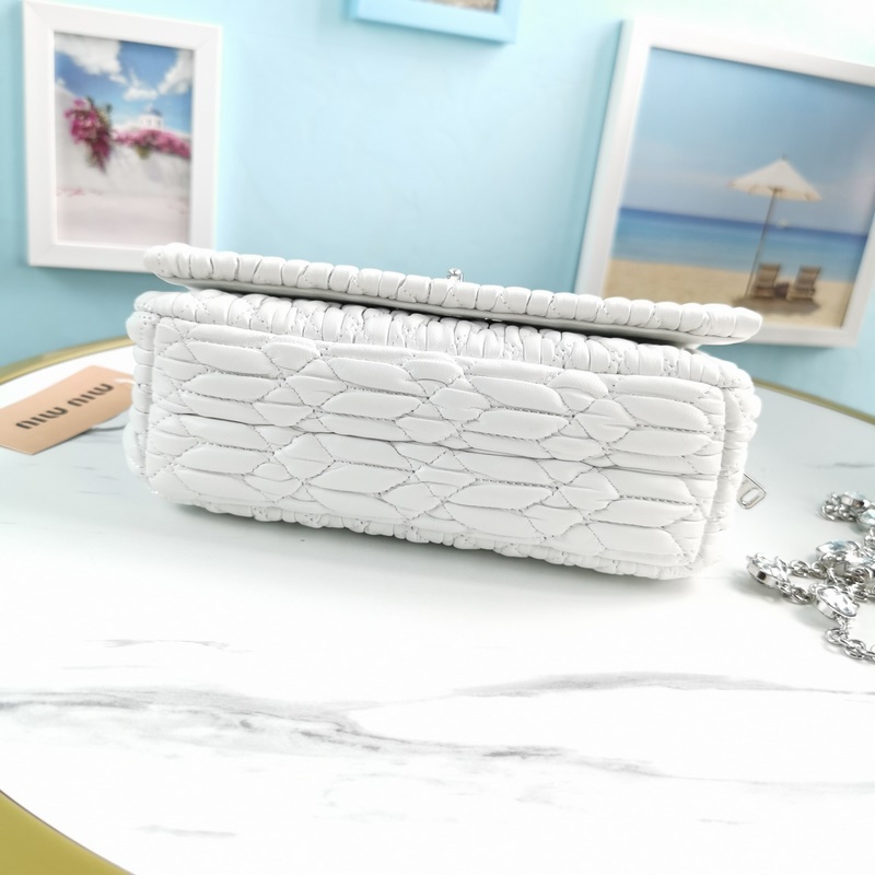 Miumiu 화이트 모델 번호: 5BH012 크리스탈 장식 체인 스트랩이