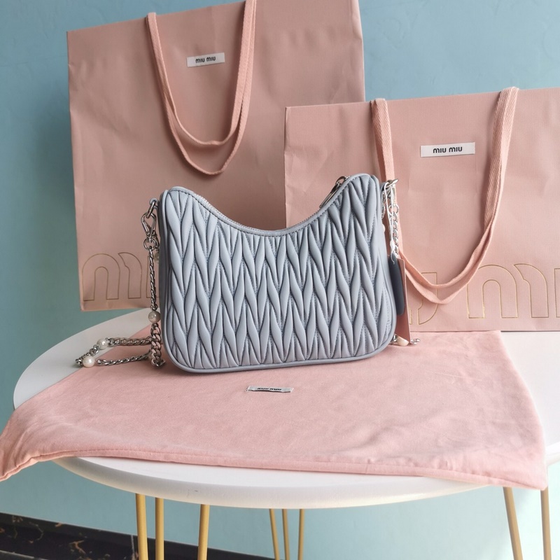 Miumiu 크로스바디 백 시그니처 매트리스 자수 양가죽 소재 진
