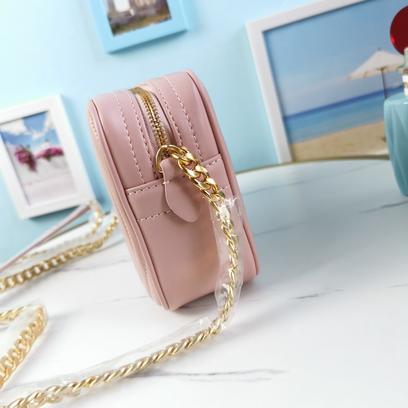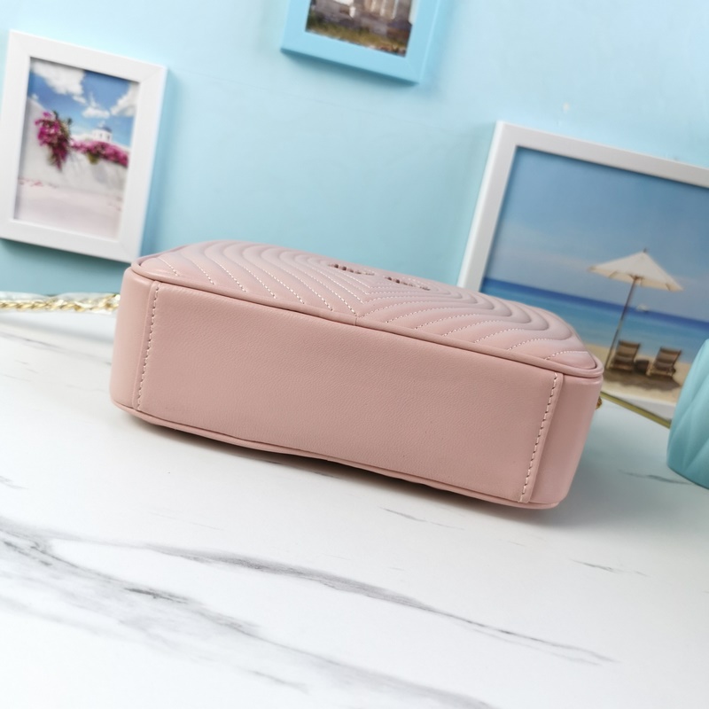 Miumiu 체인백 새로운 하트 모양 가방 모델 번호: 5BH118C 최고급 수입 마테라스 양가죽 소재 새로운 하트 모양의 엠보싱 디자인 탈착식 금속 체인과 가죽 어깨 패드 크로스 바디 스트랩 앞면의 톤온톤 금속 로고 새틴 안감 뛰어난 상체 효과 크기: 20X13X5.5cm 품번: SD96181100