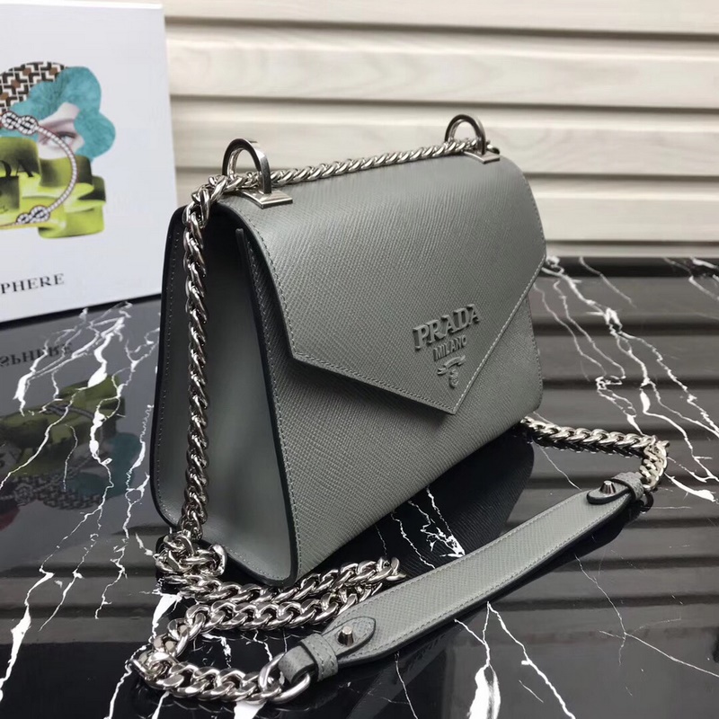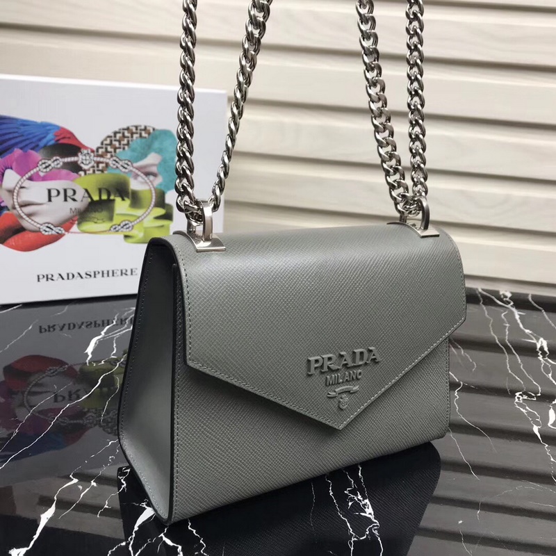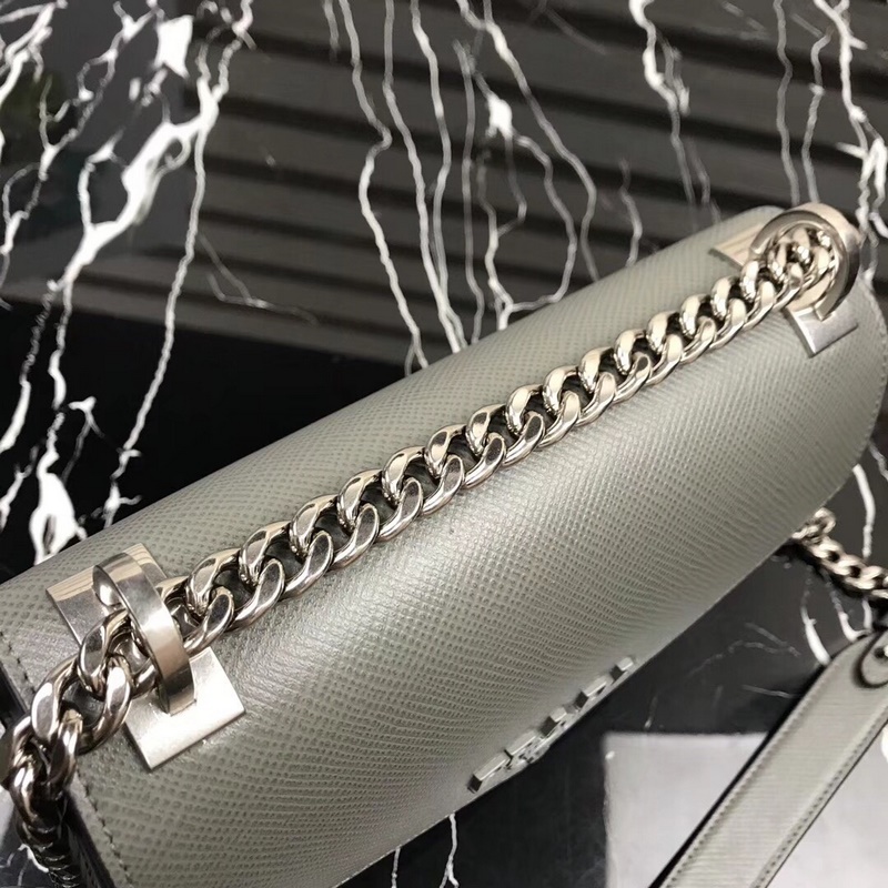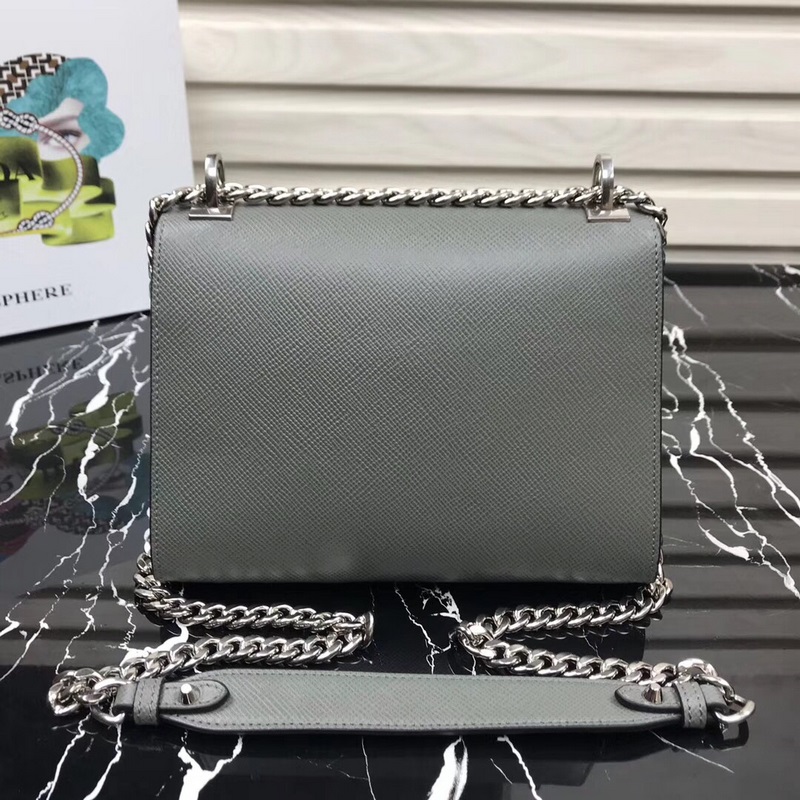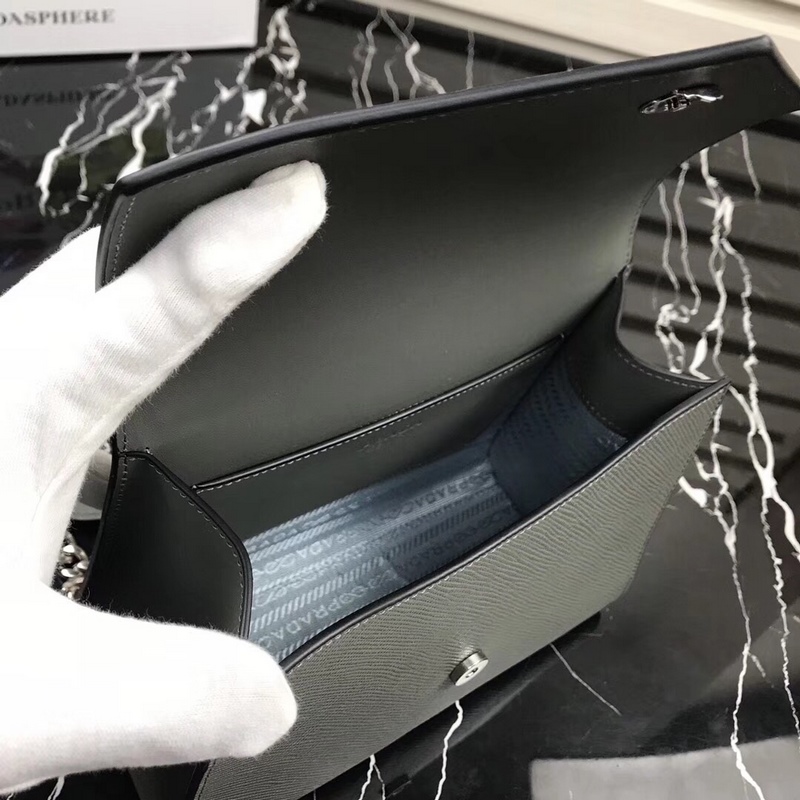 프라다 새로운 모델 번호: 1BD127 사피아노 가죽 거친 결의 소가죽 조절 가능한 체인 숄더 스트랩 톤온톤 메탈 로고 상단 자석 스냅 잠금 로고 안감 내부 포켓 2개 심플한 고급스러움이 부유함과 품격을 느끼게 해줍니다. 크기: 21×14×10cm 품번: SG96181050