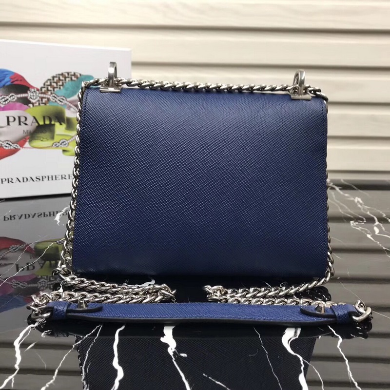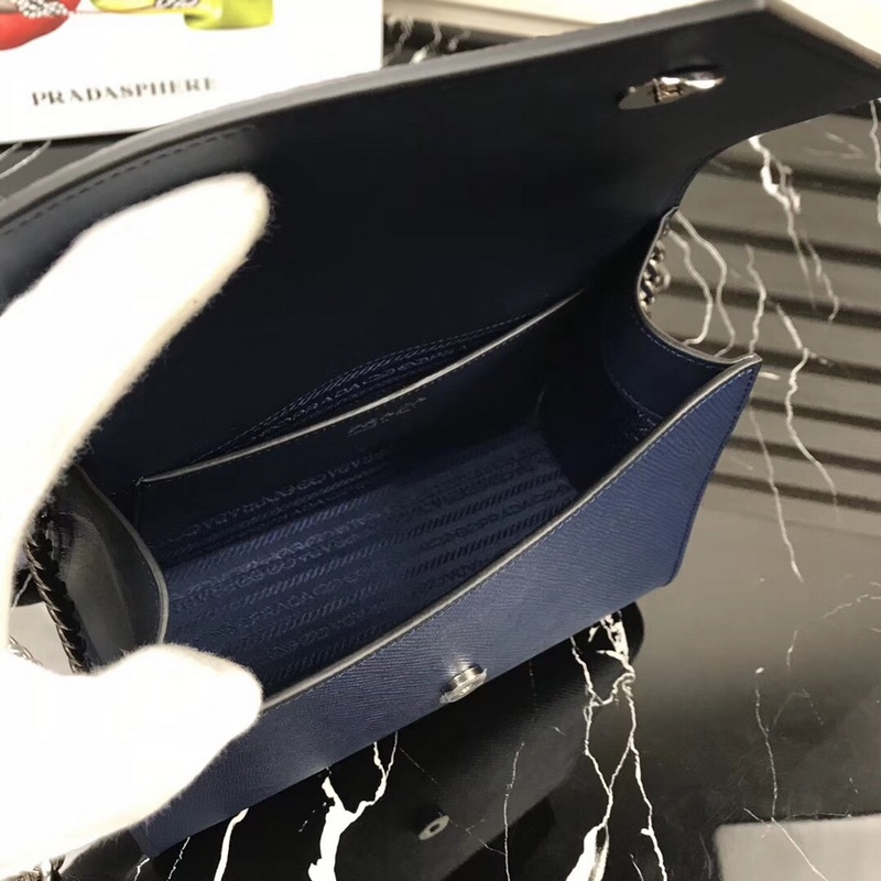 프라다 새로운 모델 번호: 1BD127 사피아노 가죽 거친 결의 소가죽 조절 가능한 체인 숄더 스트랩 톤 메탈 로고 상단 자석 스냅 잠금 프라다 로고 안감 내부 포켓 2개 심플한 고급스러움으로 부유함을 뽐내세요 크기: 21×14×10cm 품번: SG96181050