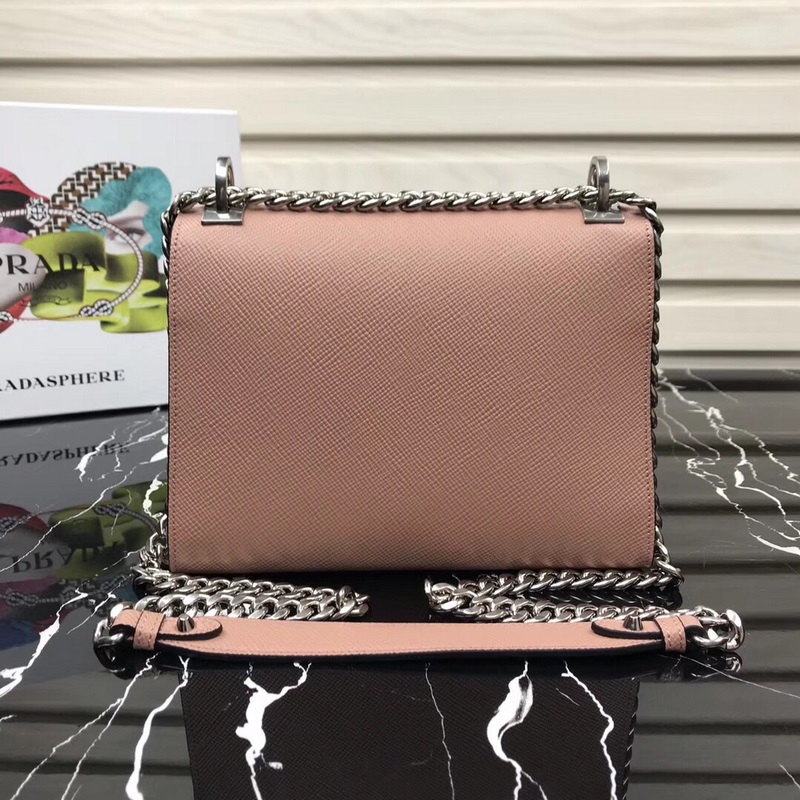 프라다 새로운 모델 번호: 1BD127 사피아노 가죽 그레인드 소가죽 조절 가능한 체인 숄더 스트랩 톤 메탈 로고 상단 자석 스냅 잠금 프라다 로고 안감 내부 포켓 2개 심플한 고급스러움과 품격 있는 외관 크기: 21×14×10cm 품번: SG96181050