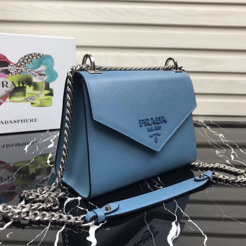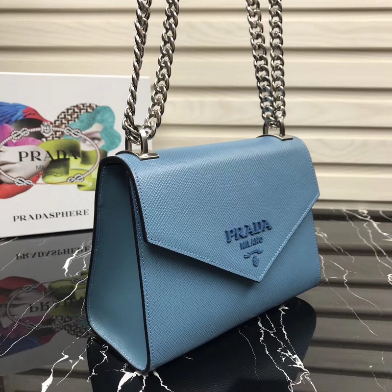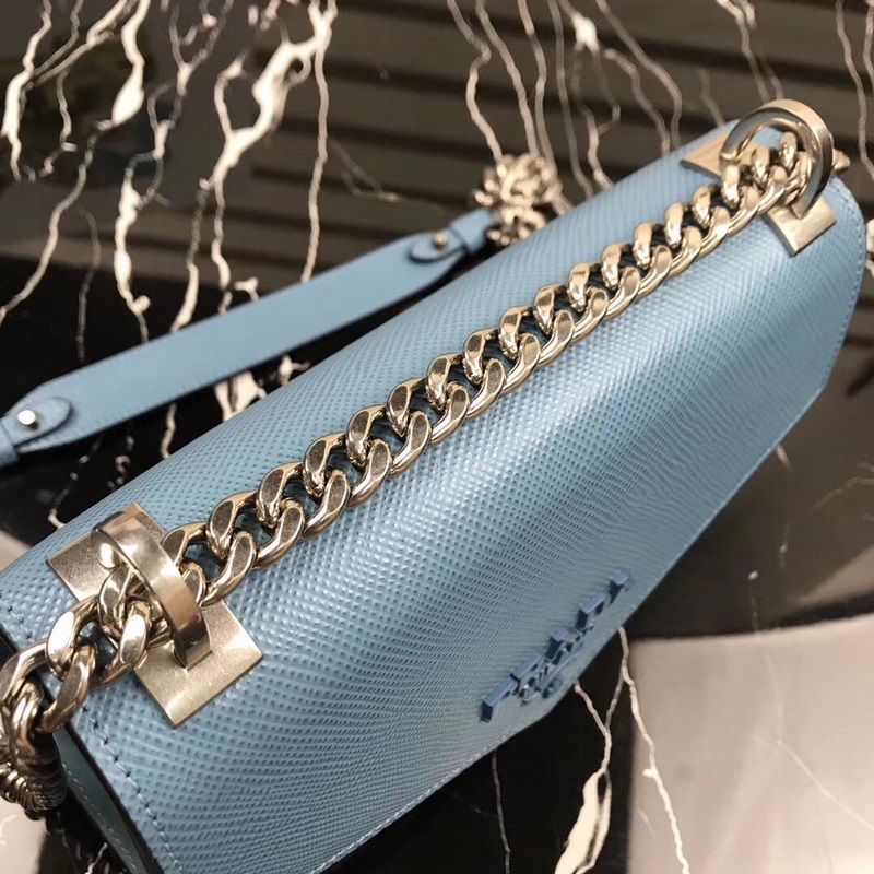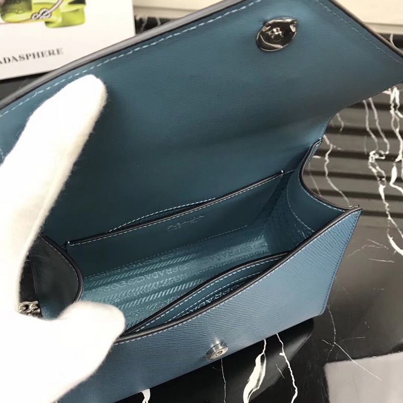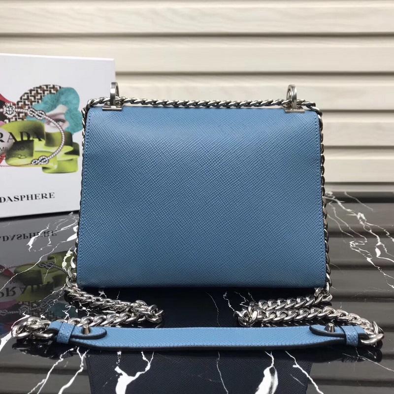 프라다 신형 모델 번호 1BD127 사피아노 가죽 거친 결의 소가죽 조절 가능한 체인 숄더 스트랩 톤 메탈 로고 상단 자석 스냅 잠금 프라다 로고 안감 내부 포켓 2개 심플한 고급스러움으로 부유함을 뽐내세요 크기: 21×14×10cm 품번: SG96181050