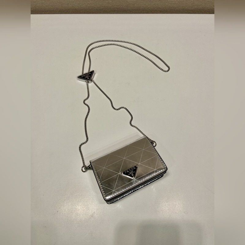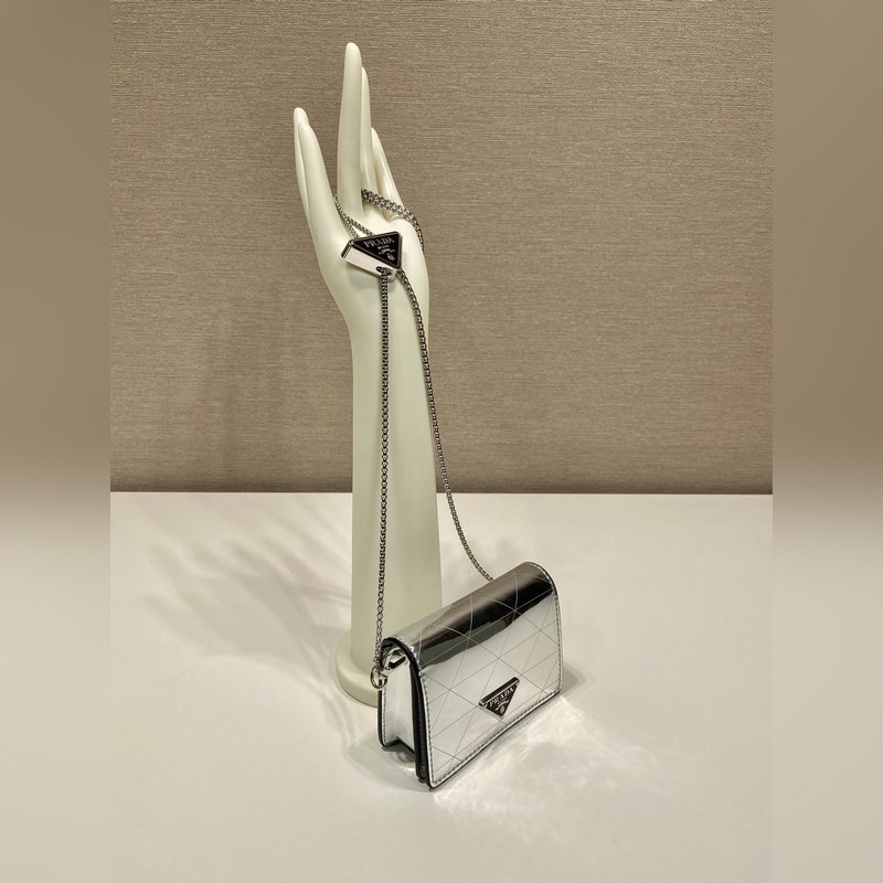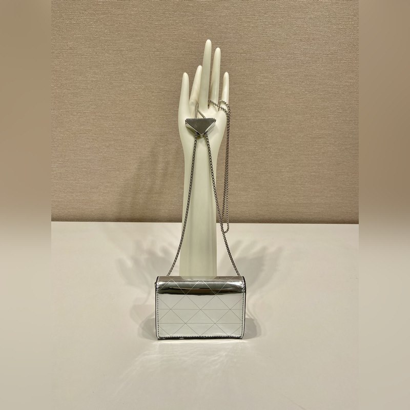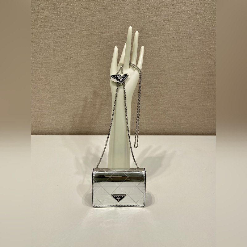 프라다 반짝이는 클러치 모델 번호: 1MR024 실버 미러 이 작은 가