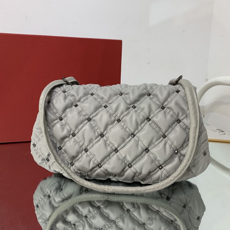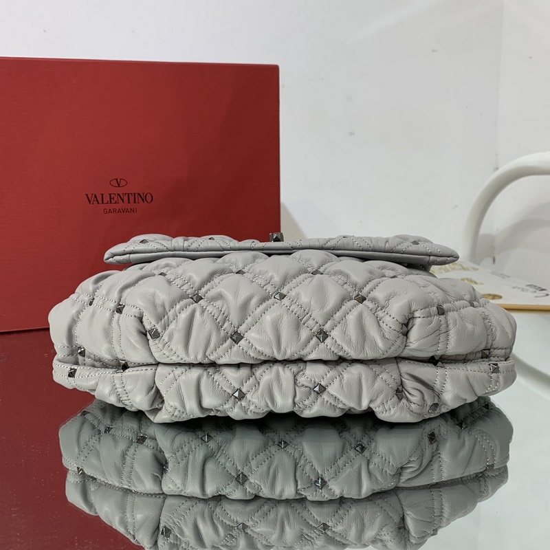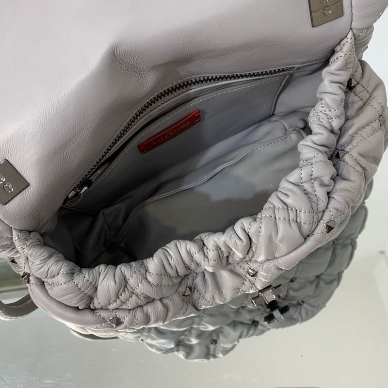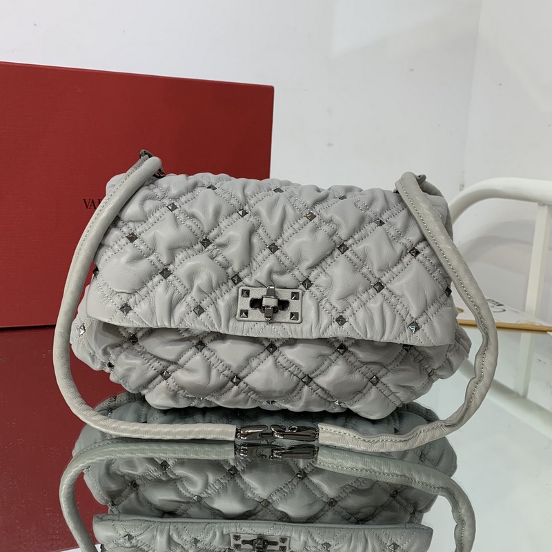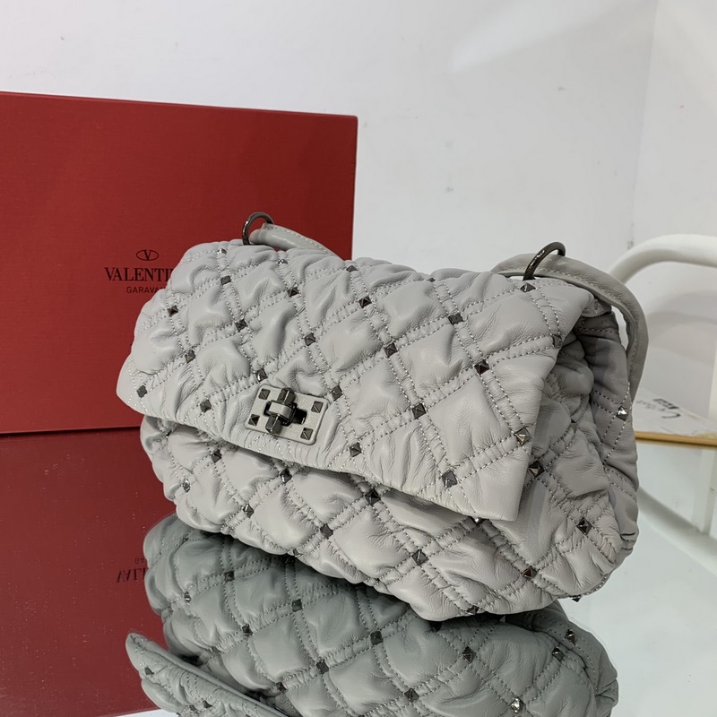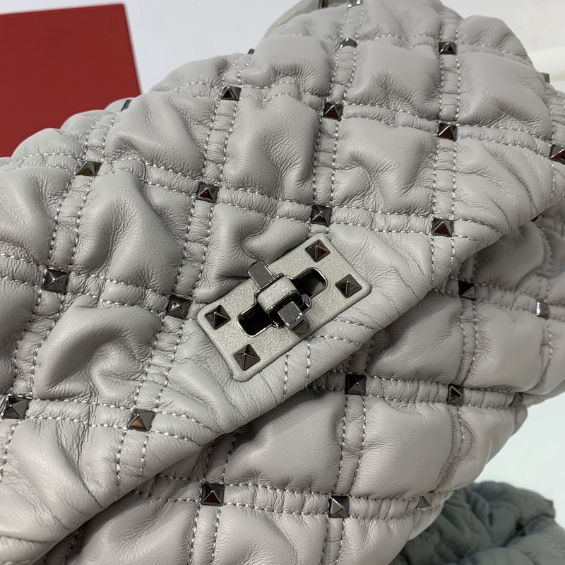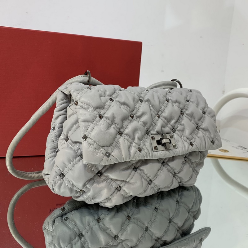 Valentino Pleated SpikeMe 미디엄 엠보싱 가죽 체인백 작은 스터드와 다이아몬드 패턴 금속 효과 스터드와 피팅 플랩 잠금장치 탈착식 가죽 커버 슬라이딩 체인 양가죽 안감 지퍼 포켓과 플랫 포켓 모델 번호 2078 크기: 23 x 13 x 12cm [모두 상자 포함] 상품 번호: SD96181290