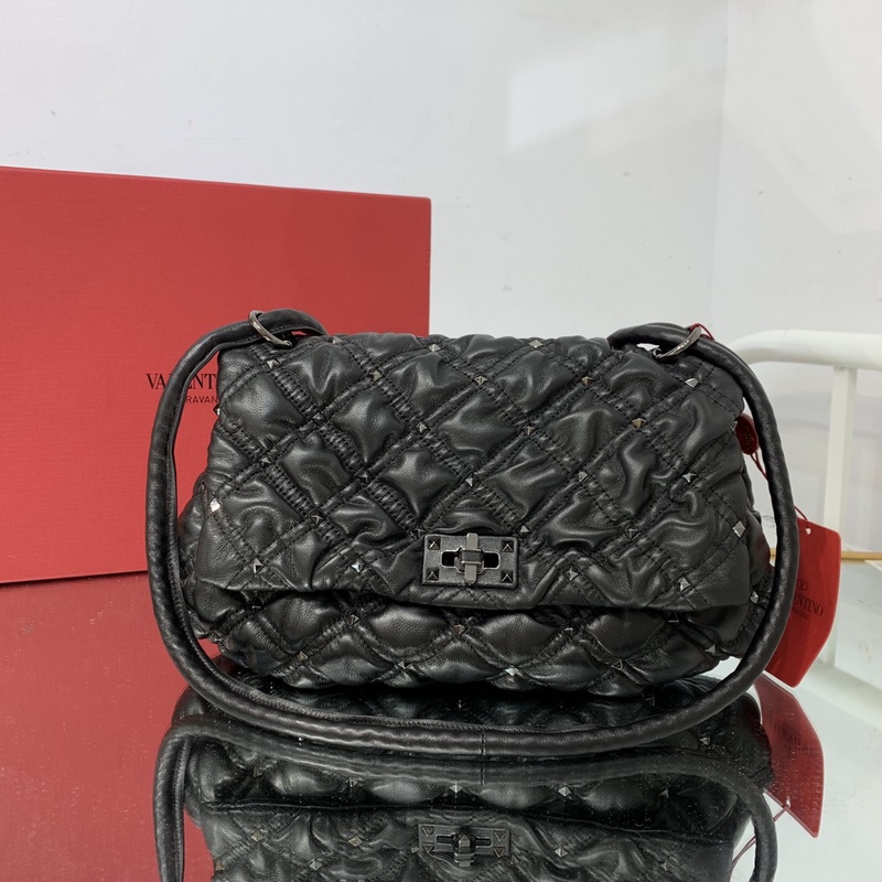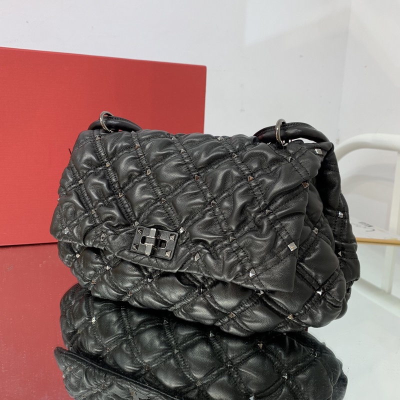 발렌티노 플리츠 모델 SpikeMe 미디엄 엠보싱 가죽 체인백 작은 스