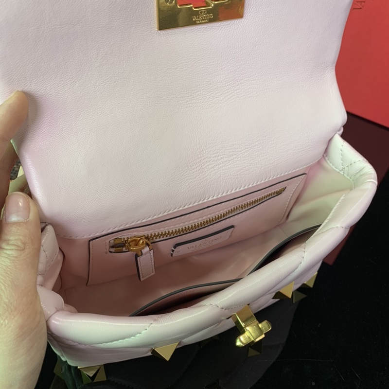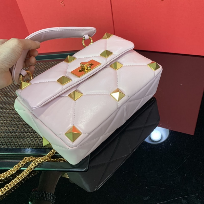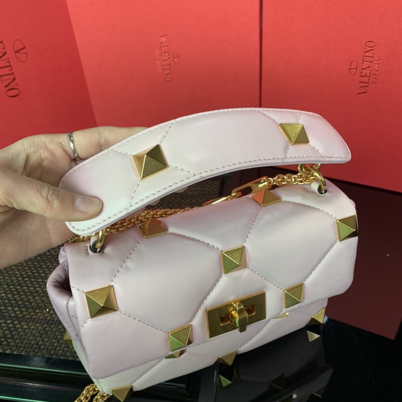 발렌티노 스몰 큰 스터드가 달린 작은 나파 가죽 체인 백 대형 스터드가 있는 퀼트 구조 탈착식 손잡이 슬라이딩 체인 트림 크로스 바디 / 어깨에 메거나 손으로 들 수 있습니다. 톤온톤 스티칭으로 프리즘 패턴을 강조한 탑스티치 나파 가죽 - 빈티지 브라스 효과 금속 리벳과 피팅 - 트위스트 락 잠금 - 나파 가죽 내부: 지퍼형 포켓 - 크기: 가로 25 x 세로 16 x 높이 10cm 모델 번호: 2060S 아이템 번호: SX86181060