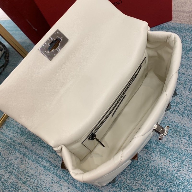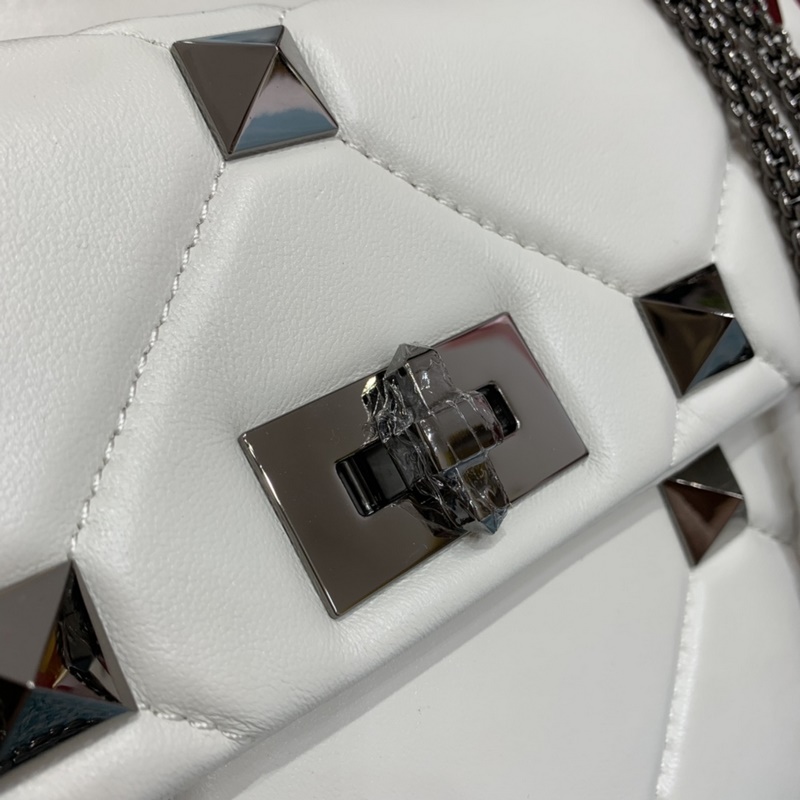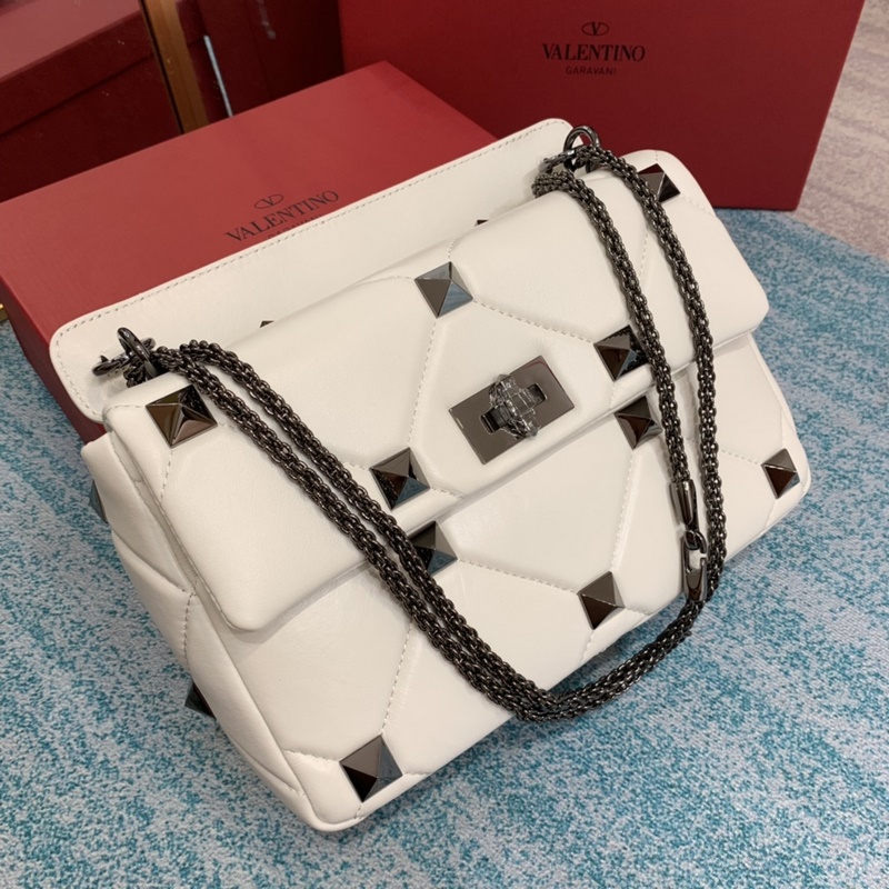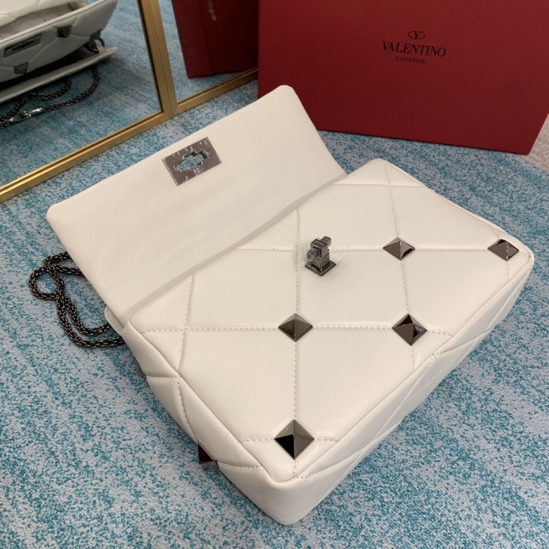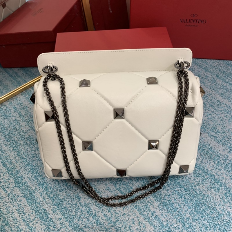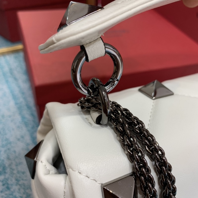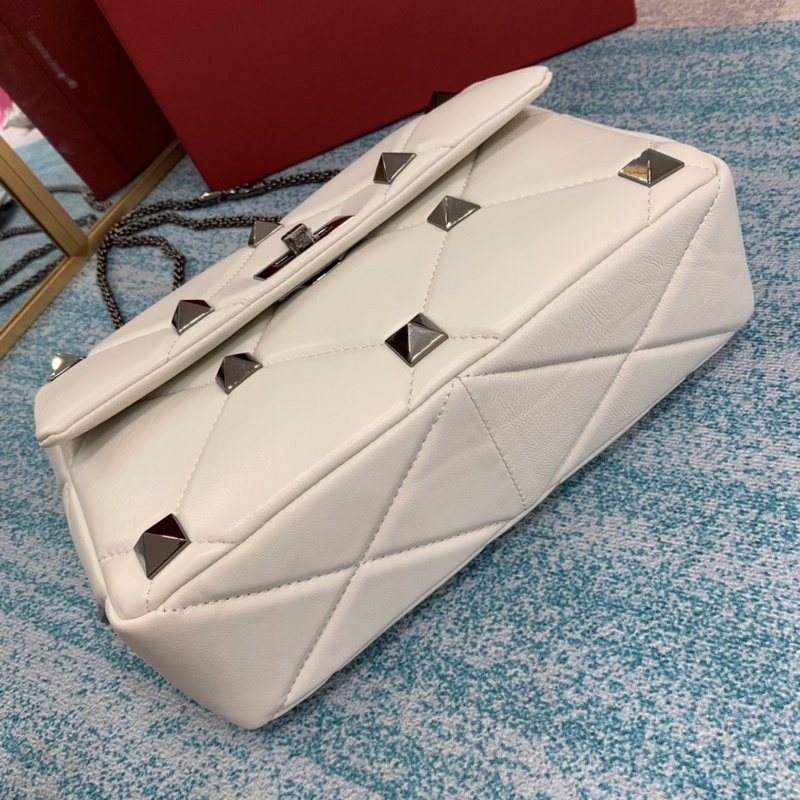 발렌티노 오프화이트 스터드 장식 대형 스터드 장식의 나파 가죽 체인백.