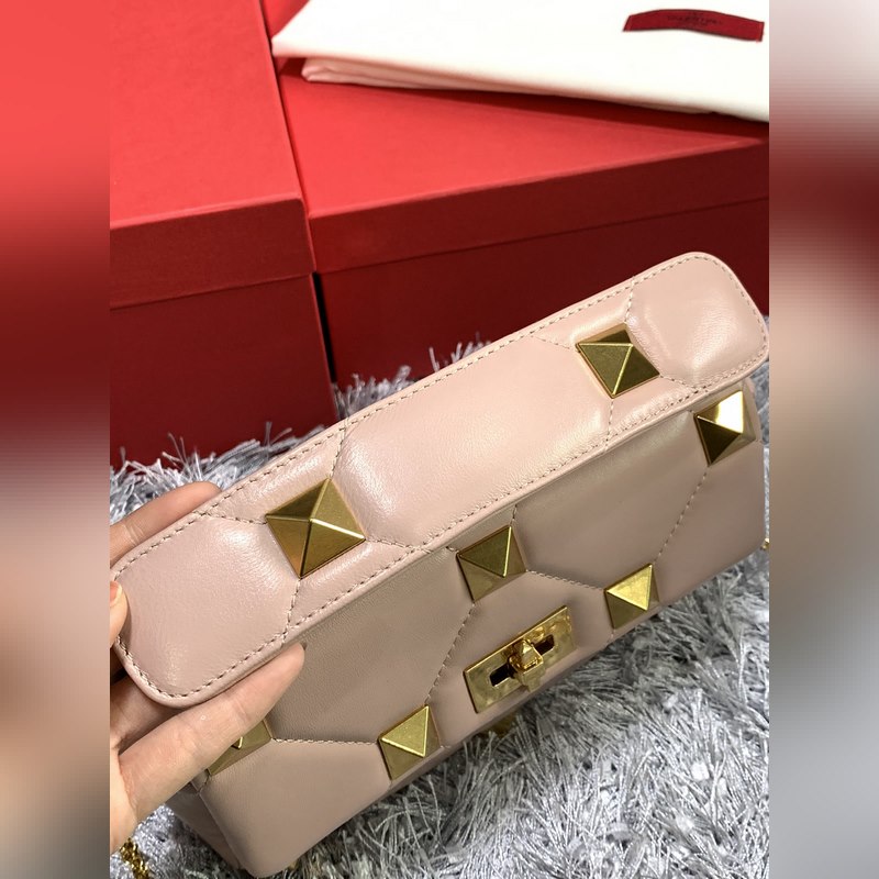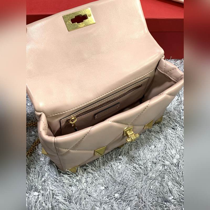 발렌티노 스몰 큰 스터드가 달린 작은 나파 가죽 체인 백 대형 스터드 탈착식 손잡이 슬라이딩 체인 트림이 있는 퀼트 구조 크로스 바디 / 어깨에 메거나 손으로 들 수 있습니다. 톤온톤 스티칭으로 프리즘 패턴을 강조한 탑스티치 나파 가죽 - 빈티지 브라스 효과 금속 리벳과 피팅 - 트위스트 락 잠금 - 나파 가죽 내부: 지퍼형 포켓 - 크기: 가로 25 x 세로 16 x 깊이 10cm - 모델 번호: 2060S 아이템 번호: SX86181060
