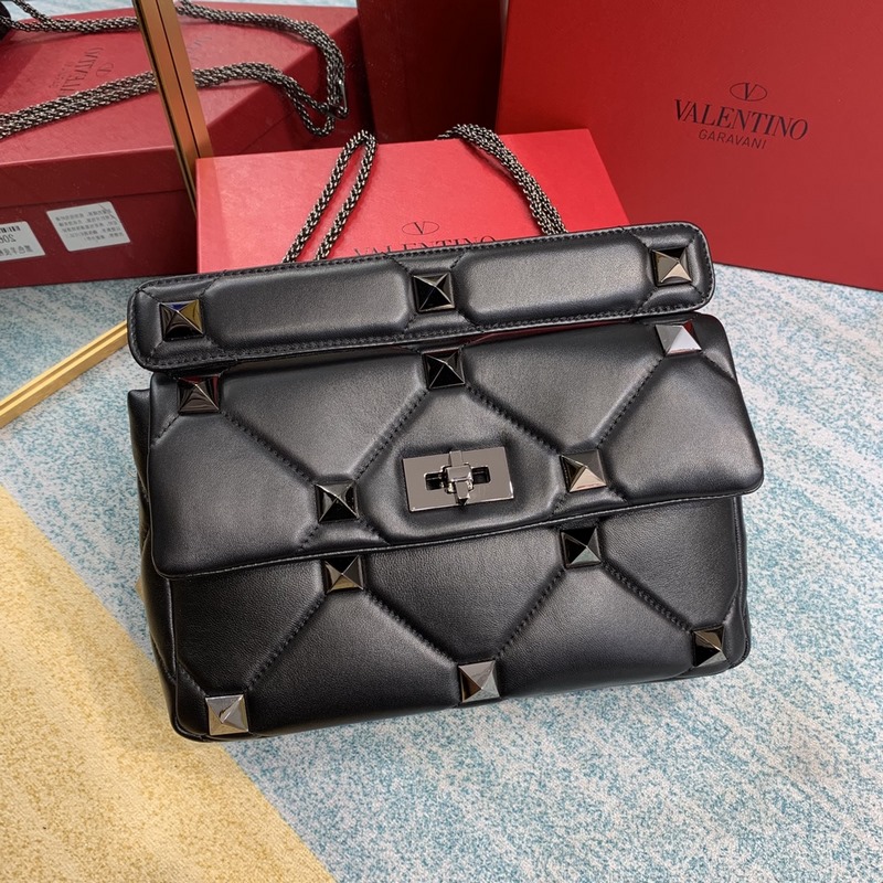 발렌티노 검은 총 모델 스터드 장식 나파 양가죽 체인백 퀼팅 구조