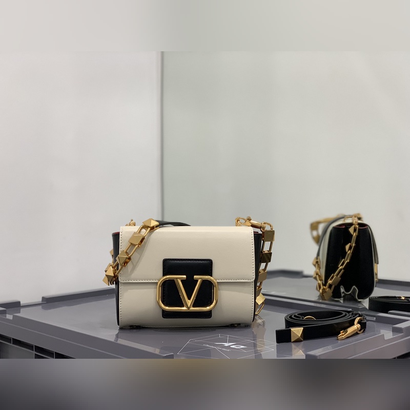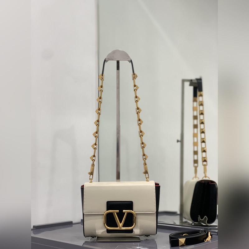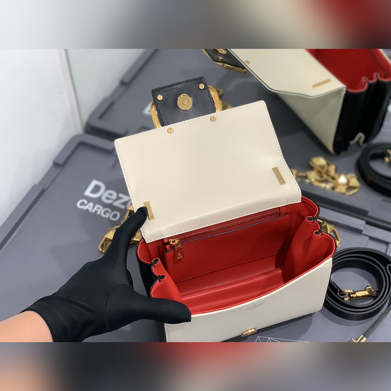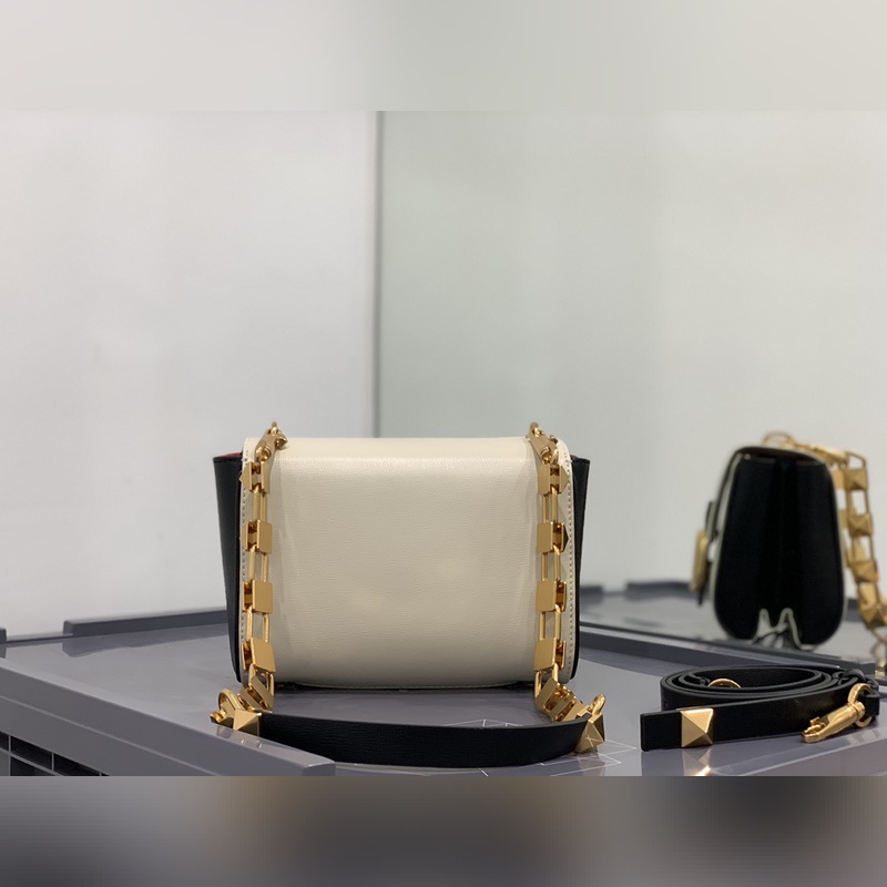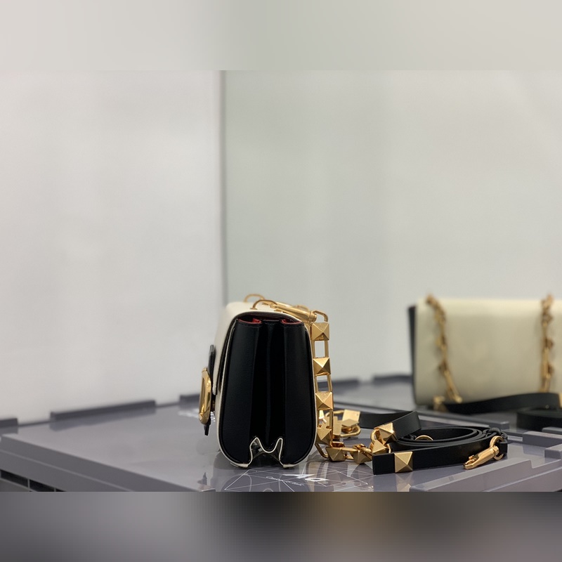 발렌티노 흑백 무겁고 우아하며 현대적인 새로운 업그레이드 로고 아이코닉한 스터드가 금속 체인 스트립과 대담하게 충돌하며 자유분방한 펑크 스타일을 발산합니다. 빈티지한 느낌을 주는 황동 금속 피팅. 자석 걸쇠와 탈착식 체인 스트립이 달린 어깨 스트랩. 길이 조절이 가능하고 탈착이 가능한 가죽 어깨 스트랩. 체인 스트립. 부드러운 양가죽 안감. 내부: 지퍼 포켓 1개와 오픈 슬립 포켓 1개. 모델 번호: 9600 - 크기: 20 x 15 x 7 (상자 포함) 품번: SD96181400
