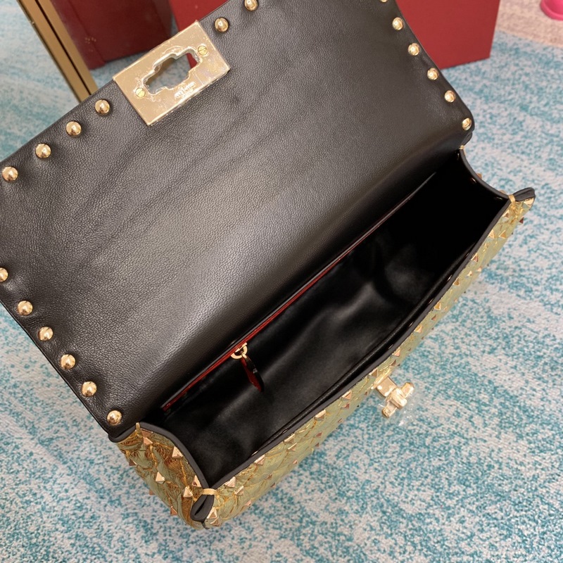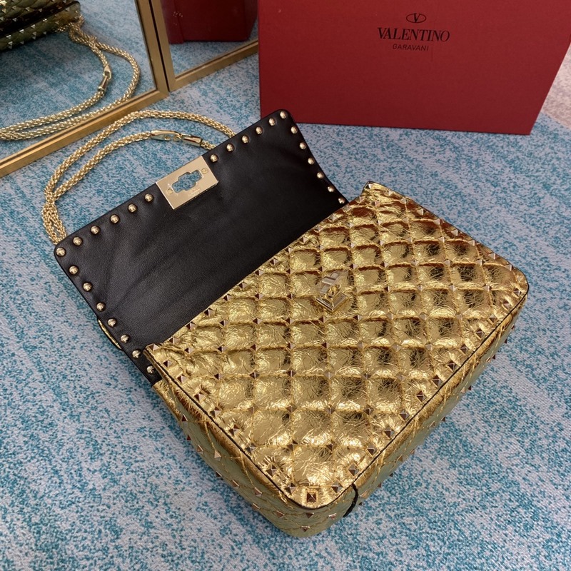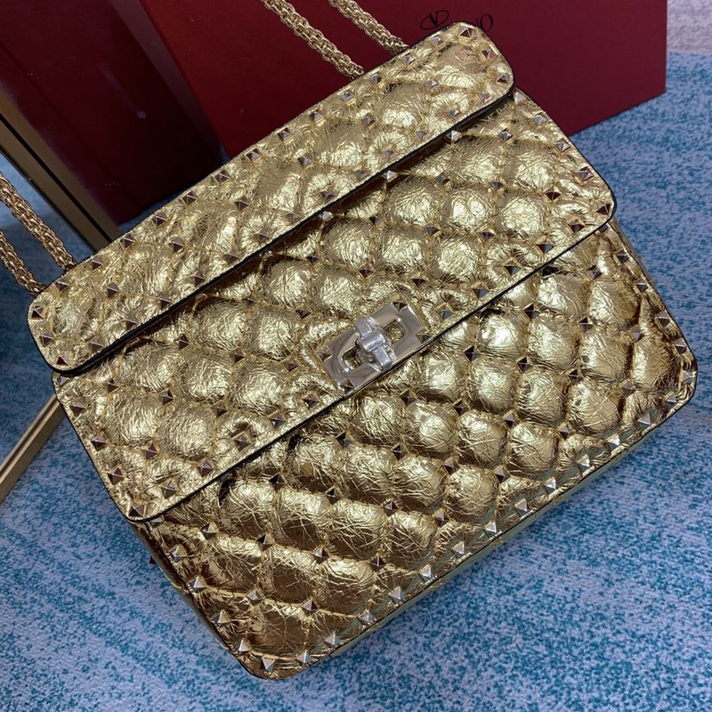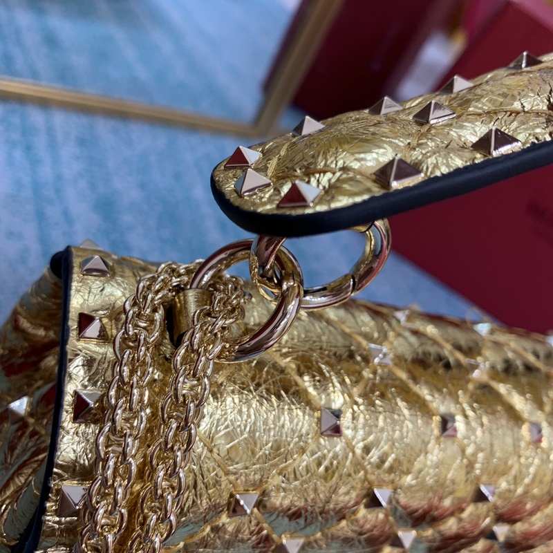 발렌티노 황금빛 금이 간 무늬 팬빙빙과 같은 유형의 핸드백 모델 여성용 숄더백 수입 소프트 양가죽으로 제작 다이아몬드 퀼팅 자수 정교한 장인 정신과 미니어처 리벳 설치 탈착식 핸들 슬라이더와 탈착식 타로 체인 장착 어깨에 메거나 크로스 바디로 메거나 손으로 들 수 있음 모델 번호: 0122 크기: 24*16*6.5 아이템 번호: SD96181350