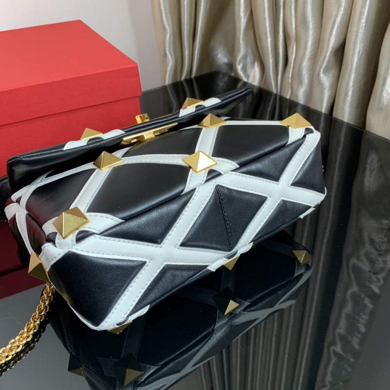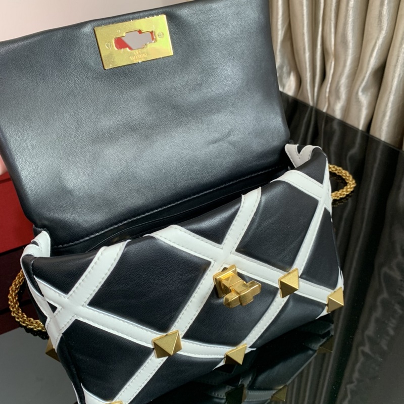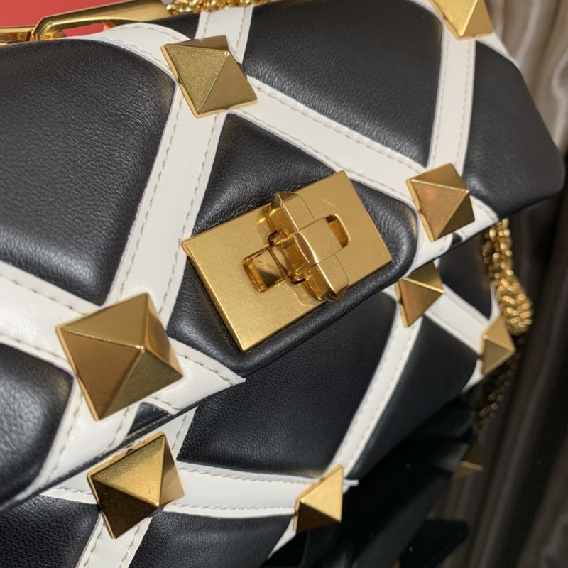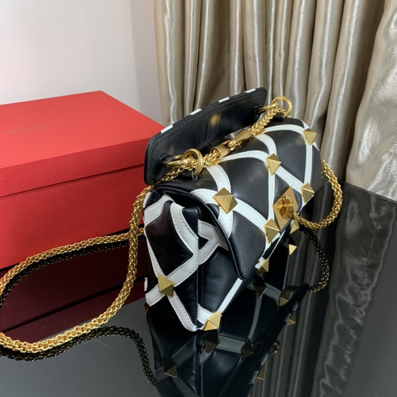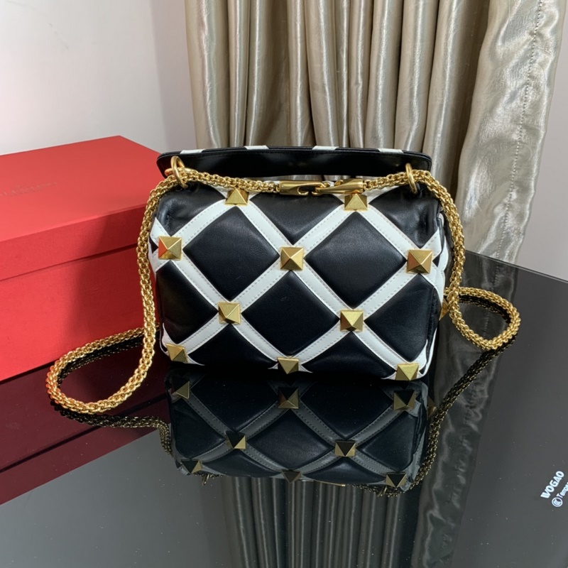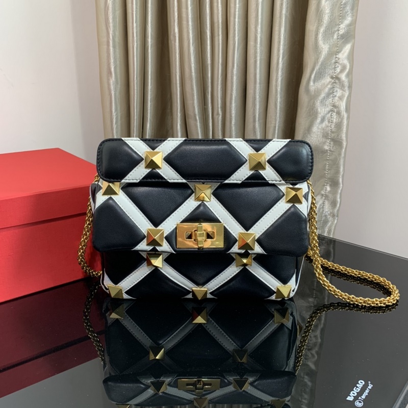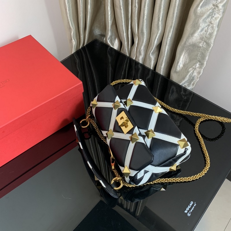 발렌티노 작은 다이아몬드 무늬 큰 스터드가 달린 작은 나파 가죽 체인 백 대형 스터드가 있는 퀼트 구조 탈착식 손잡이 슬라이딩 체인 트림 크로스 바디 / 어깨에 메거나 손으로 들 수 있습니다. - 프리즘 패턴을 강조하는 톱스티치와 어울리는 색상의 톱스티치 나파 가죽 - 빈티지 브라스 효과 금속 리벳과 피팅 - 트위스트 락 잠금 - 나파 가죽 내부: 지퍼형 포켓 - 크기: 가로 25 x 세로 16 x 깊이 10cm - 모델 번호: 2060S Rhombus No.: SX86181160