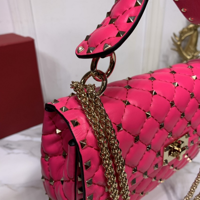 발렌티노 24cm 형광등 새로운 팬 빙빙의 동일한 모델 핸드백 가라바니 록스터드 스파이크 모델 번호: V0122 가방은 수입 양가죽으로 만들어졌으며 다이아몬드 퀼팅 자수가 새겨져 있습니다. 미니어처 스터드로 정교하게 제작되었습니다. 탈착식 핸들 슬라이더와 탈착식 타로 체인이 장착되어 있습니다. 어깨에 메거나 크로스바디로 메거나 손으로 들 수 있습니다. [기쁘다] 크기: 24*6.5*16cm(상자 포함) 번호: SD96181250