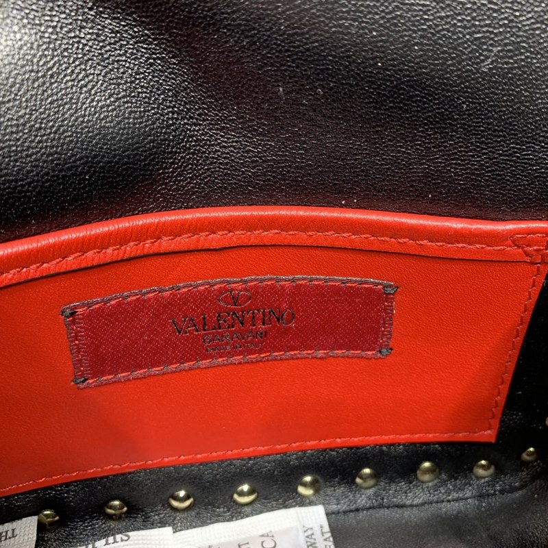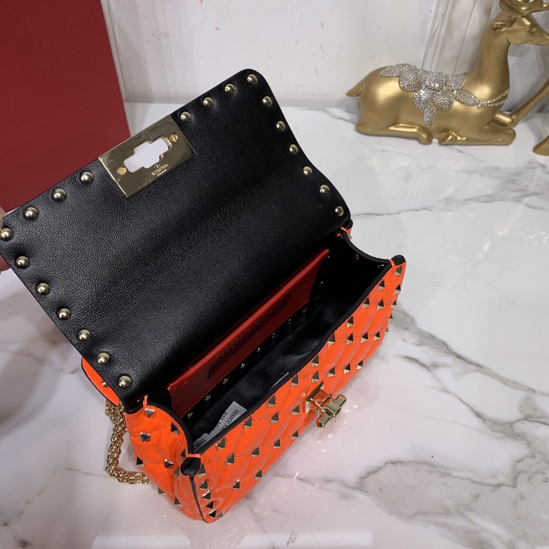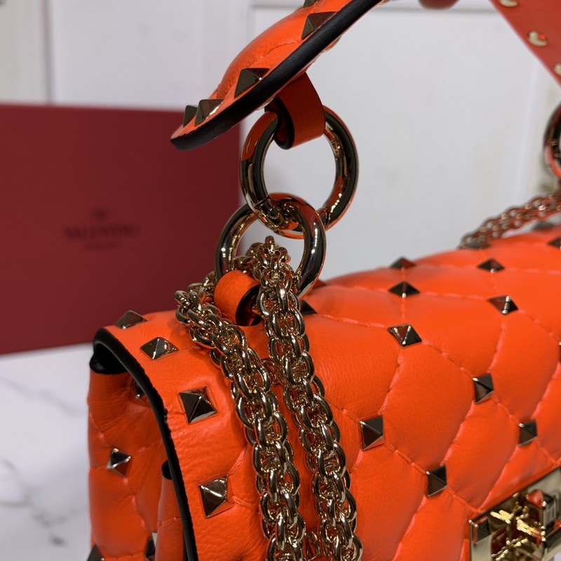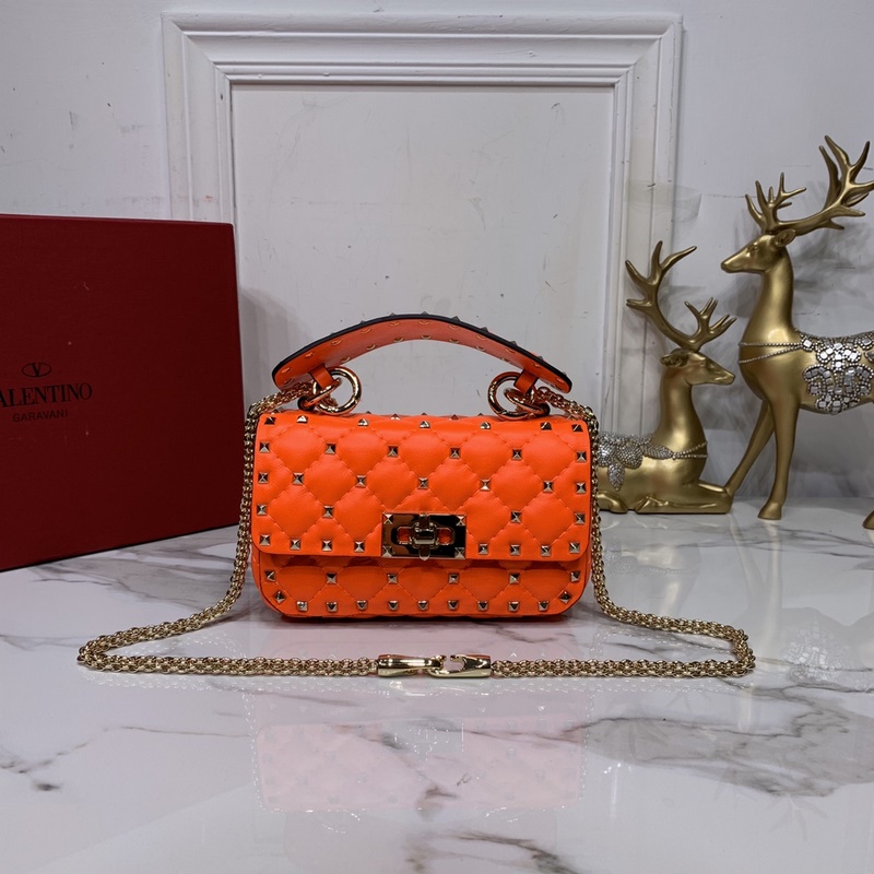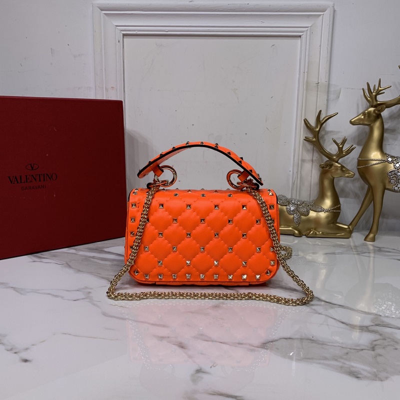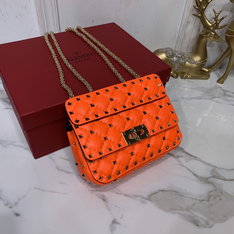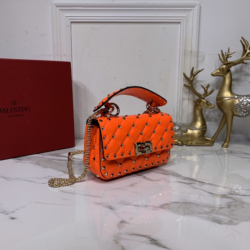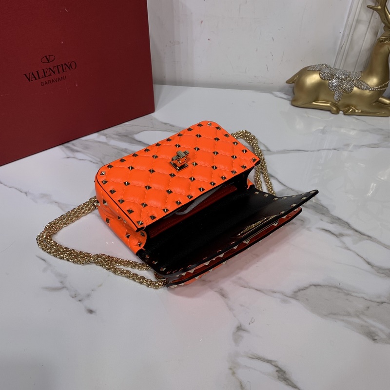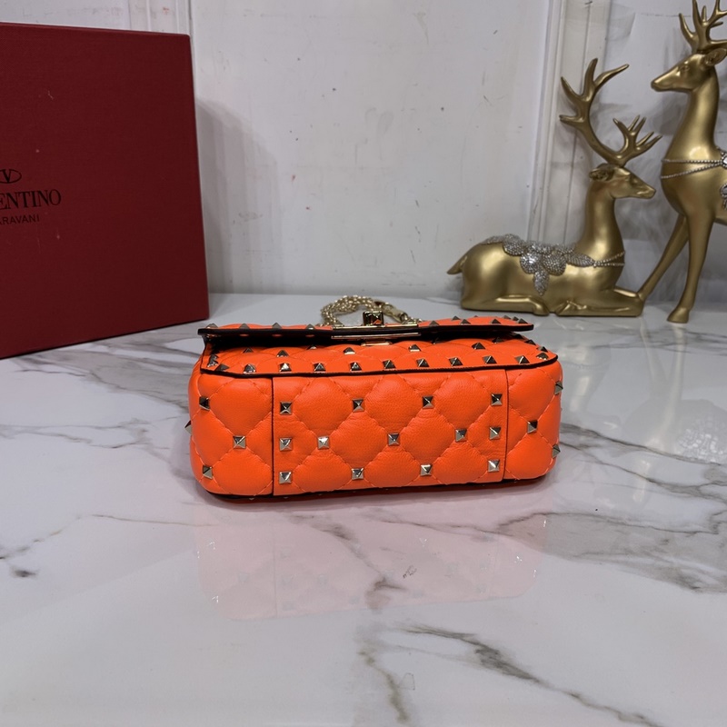 발렌티노 17cm 형광 오렌지 스파이크 백0124는 부드럽고 주름진 양