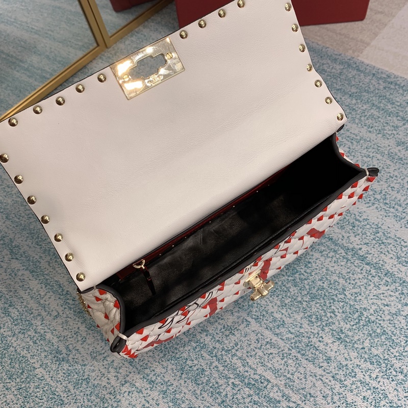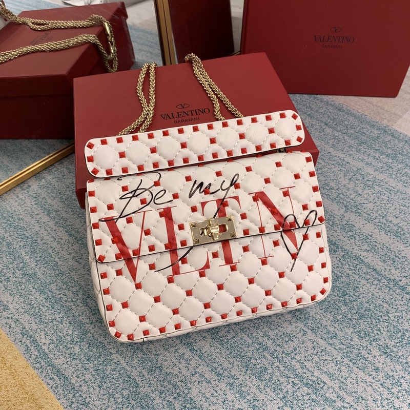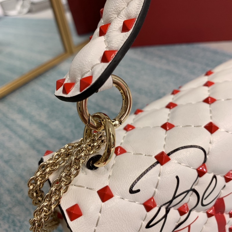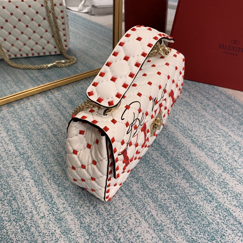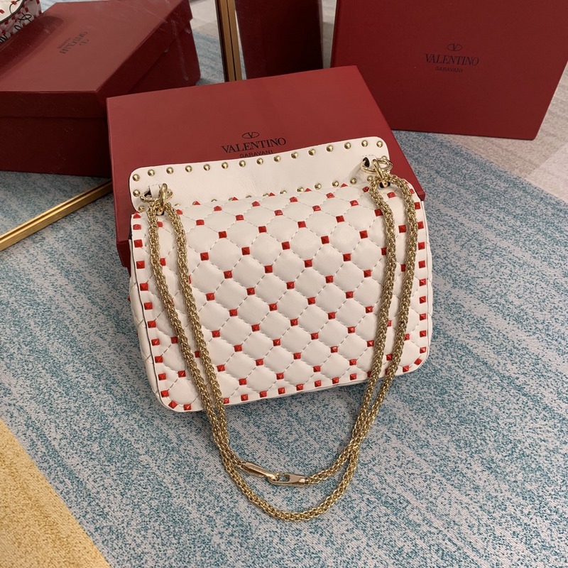 발렌티노의 새로운 팬 빙빙의 동일한 모델 핸드백 가라바니 록스터드 스파이크 모델 번호: V0122 수입 양가죽으로 만든 가방 다이아몬드 퀼팅 자수 정교한 장인 정신과 미니어처 리벳 조립 분리 가능한 핸들 슬라이더와 탈착식 타로 체인 장착 어깨에 메거나 크로스바디로 메거나 손으로 들 수 있음 [기쁘다] 크기: 24*6.5*16cm(상자 포함) 번호: SD96181250
