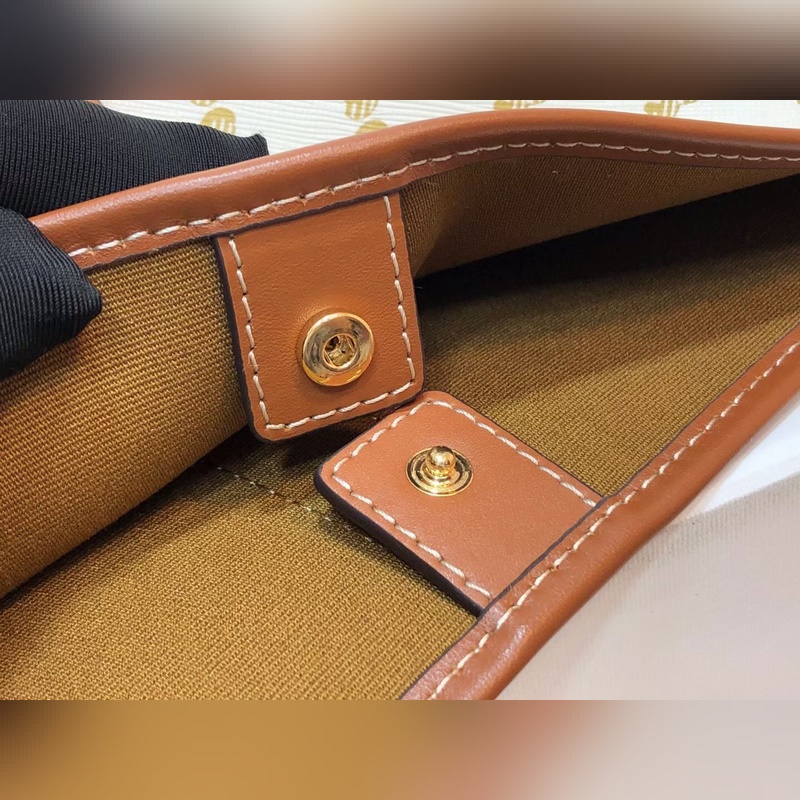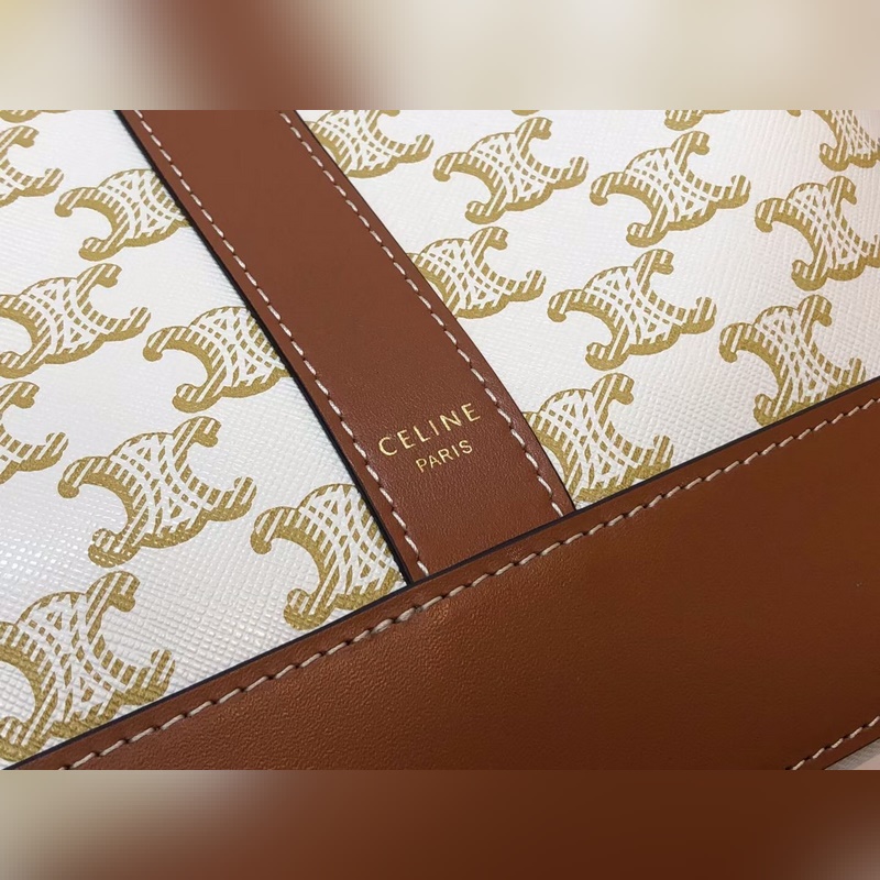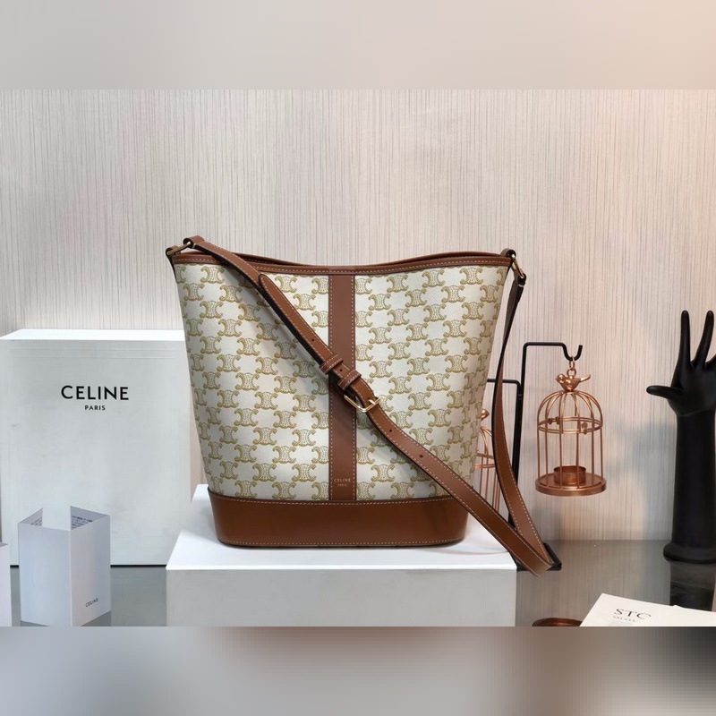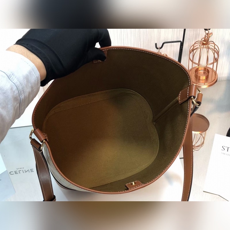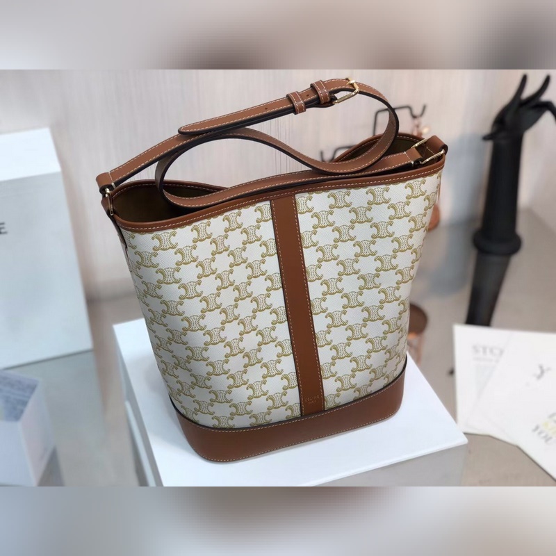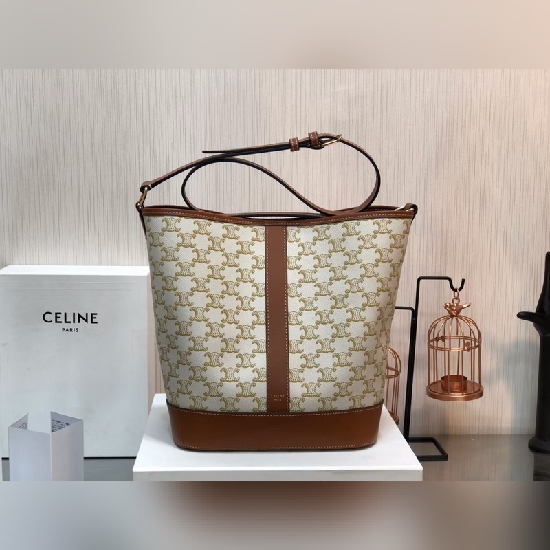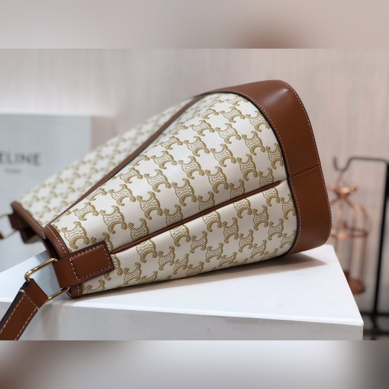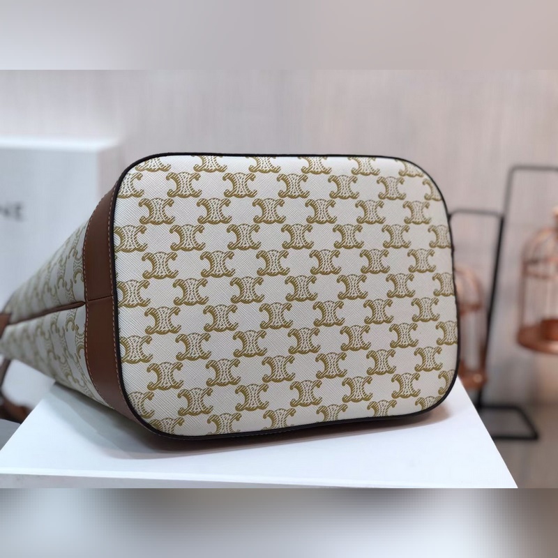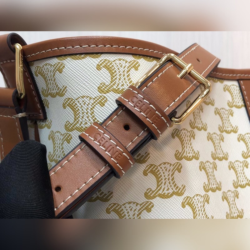CELINE TRIOMPHE 흰색 캔버스 소재의 미디엄 버킷 백 코팅 캔