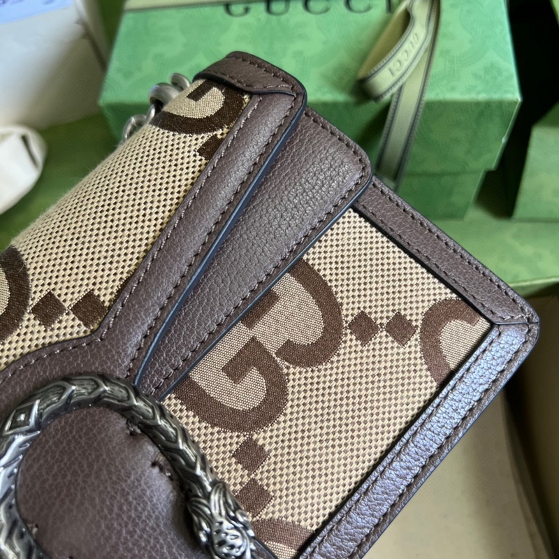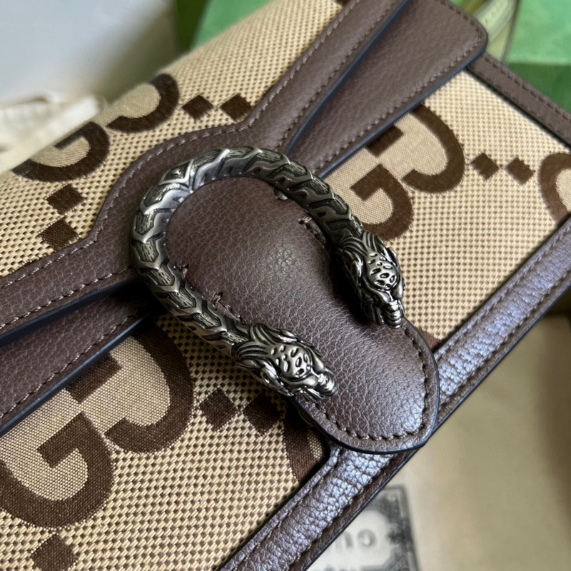 GUCCI 질감이 있는 호랑이 머리 디자인은 디오니소스 컬렉션의 고전적인 특징입니다. 소중한 디자인 아이콘의 추억을 떠올리게 합니다. 고양이 모티프는 브랜드 디자인 세계에서 반복적으로 등장하는 특징으로 자연의 야생적인 아름다움에 대한 브랜드의 매력을 전달합니다. 이 작품은 빈티지 실버 톤의 하드웨어를 특징으로 하며 블루와 아이보리색의 GG 브라운 자카드 패브릭으로 만들어졌습니다. 모델: 499623. 크기: 25*13.5*7cm. 색상: 브라운/대형 G 캔버스.