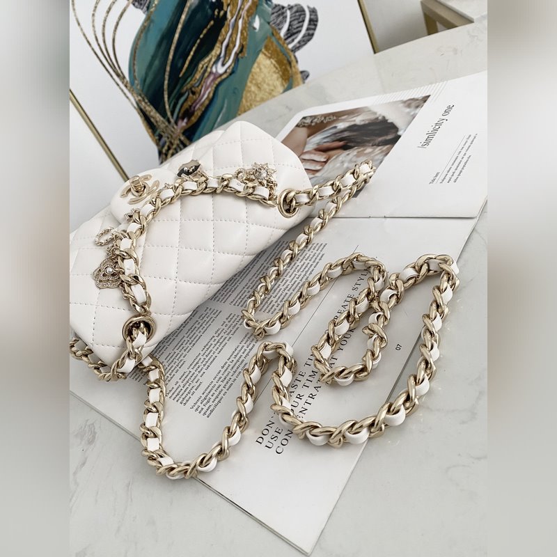 샤넬 미니 CF 펜던트 배지 플랩 백 한정판 매번 배지 디자인의 가방에서 벗어날 수 없는데 이번에도 예외는 아닙니다! 양가죽 클래식 퀼팅 플랩 백은 대담한 체인과 섬세한 펜던트로 장식되어 있습니다. 샤넬의 문자 sun + fragrance ladys silhouette N°5 + 속이 빈 동백꽃이 핸드백을 장식하여 고급스럽고 우아한 느낌을 주며 정말 아름답습니다! 체인에 달린 귀여운 배지 하나하나에 스토리가 있다고 하네요~ 정말 흥미롭습니다! 너무 귀여워서 저도 모르게 손을 뻗게 됩니다! 크기 20cm 번호 AS2326 02870
