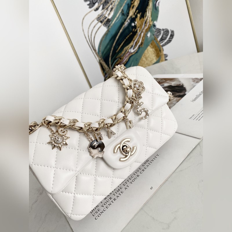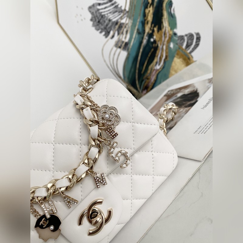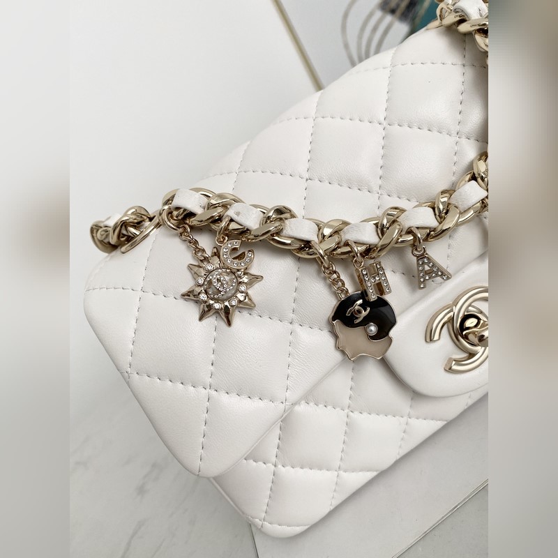 샤넬 미니 CF 펜던트 배지 플랩 백 한정판 매번 배지 디자인의 가방에서