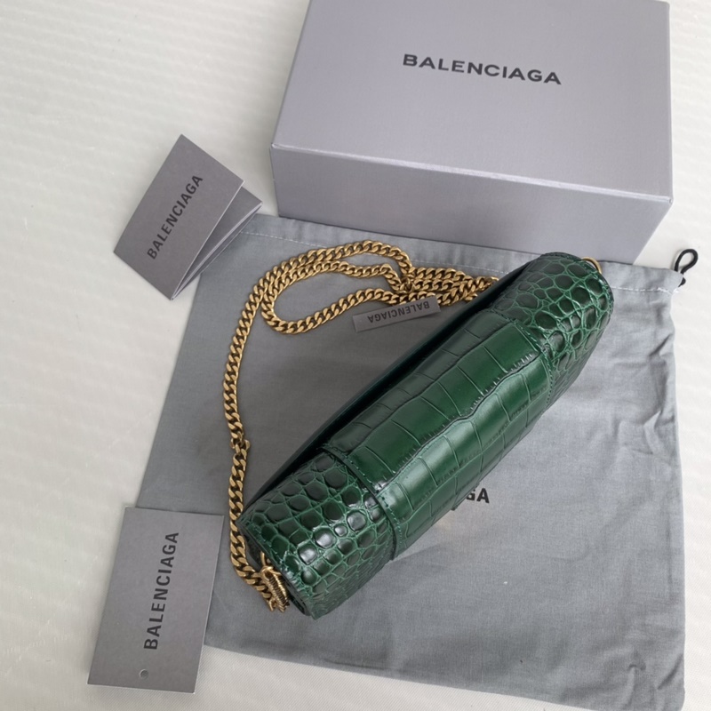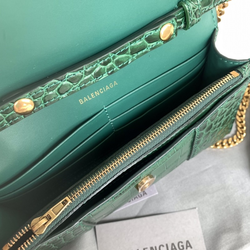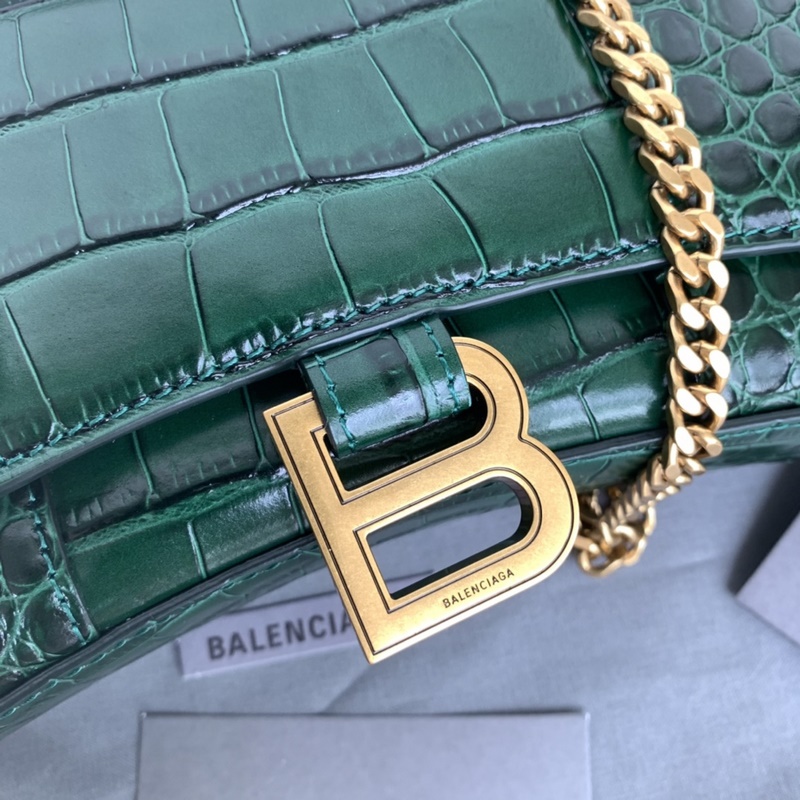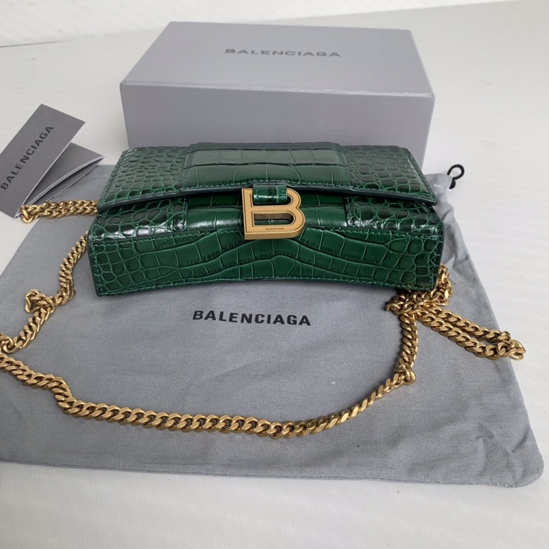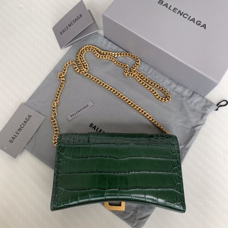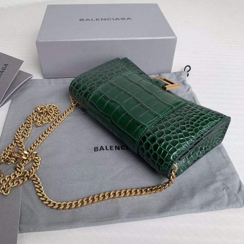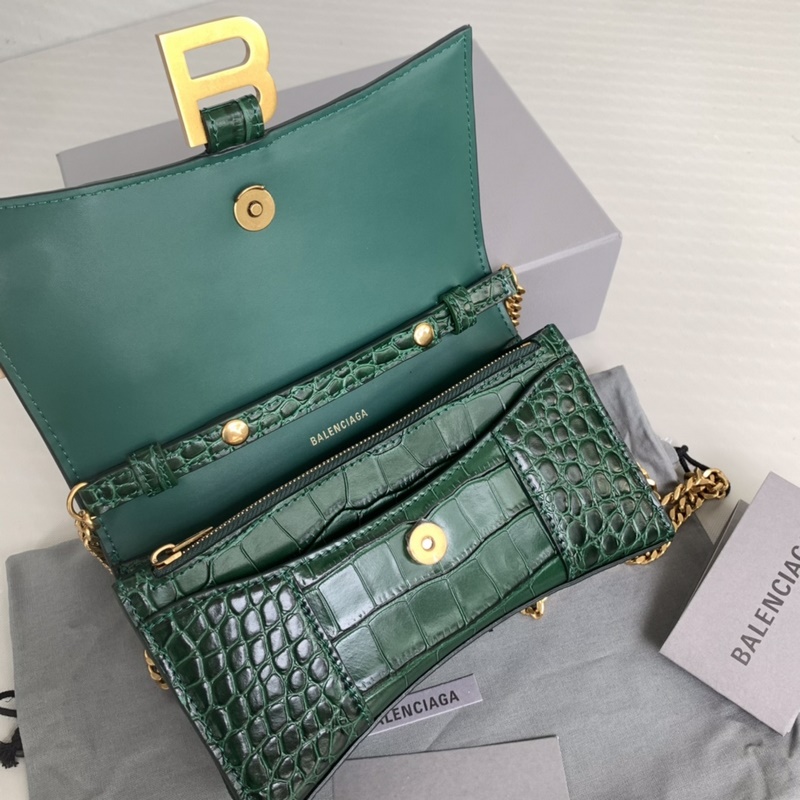 체인 모래시계 가방 BLENCIA 파리 홈 금색 악어 가죽 걸쇠 모래시계 미니 체인백 카드 슬롯 6개 패치 포켓 1개 지퍼식 내부 포켓 1개 내부 패치 포켓 고급 양가죽 안감 크기: 19.3 x 높이 11.9 x 폭 4.8cm 체인 어깨끈 길이 52cm 핸드백 크로스 바디 언더암