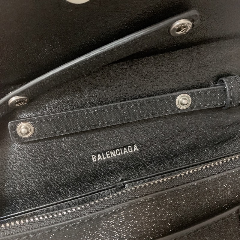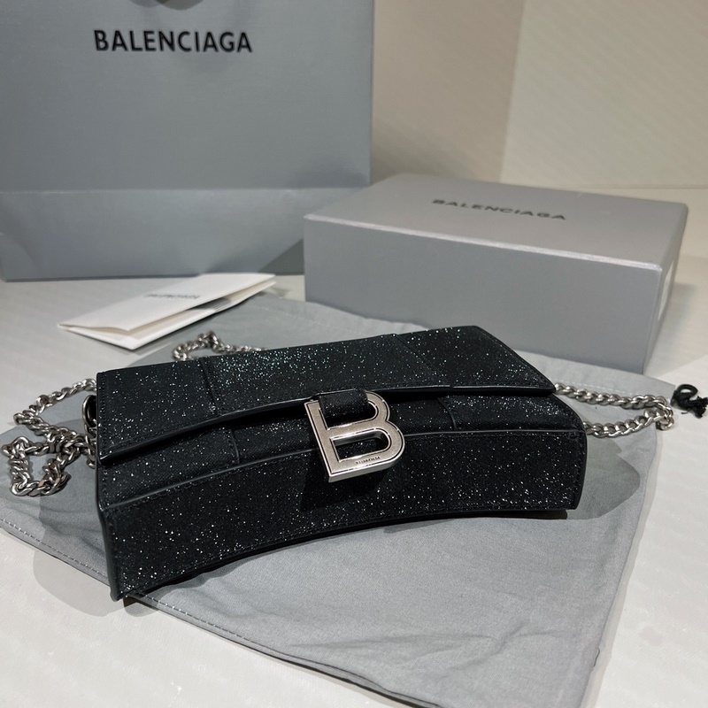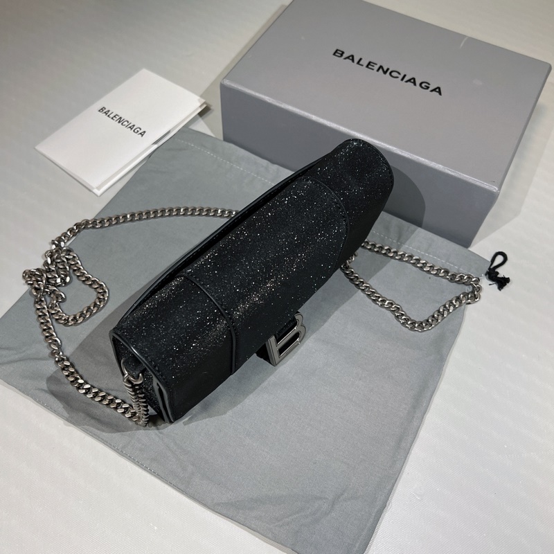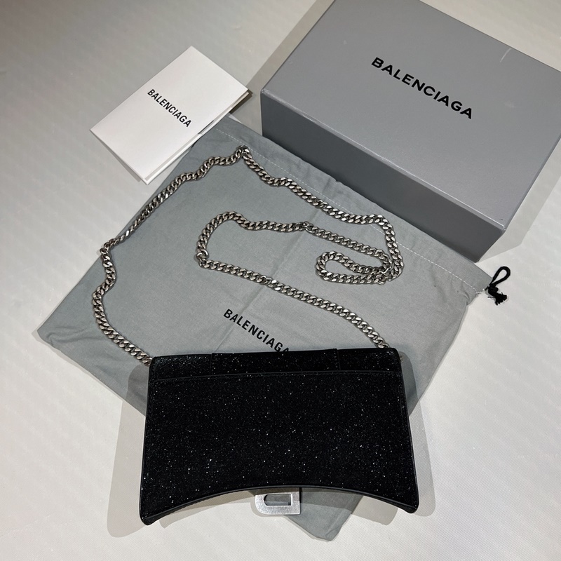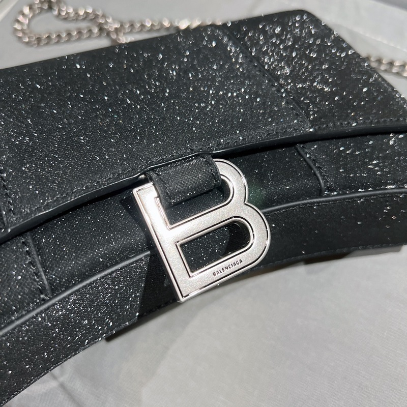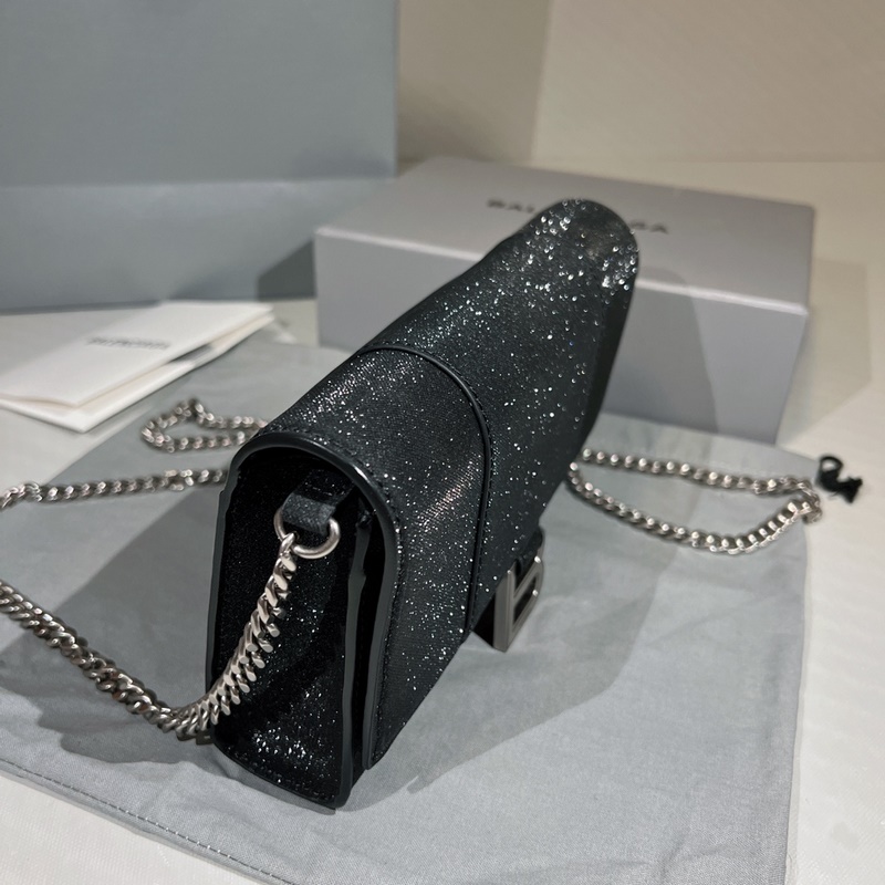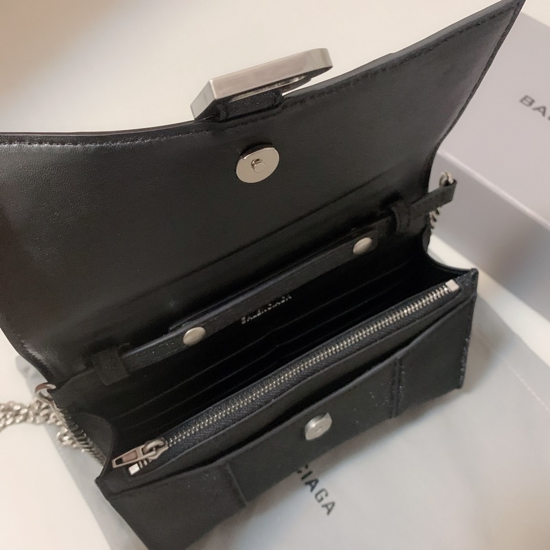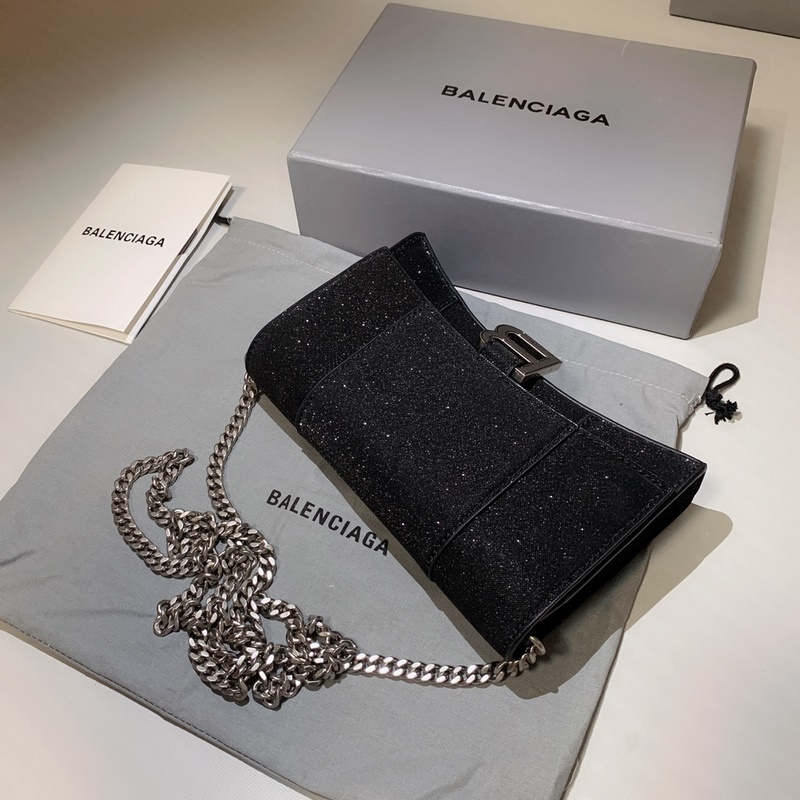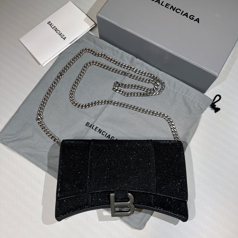 체인 모래시계 가방 BLENCIA 파리 홈 반짝반짝 검은색 모래시계 미니 체인백 카드 슬롯 6개 패치 포켓 1개 지퍼식 내부 포켓 1개 내부 패치 포켓 세밀한 양가죽 안감 크기: 19.3 x 높이 11.9 x 폭 4.8cm 체인 어깨끈 길이 52cm 핸드백 크로스 바디 언더암