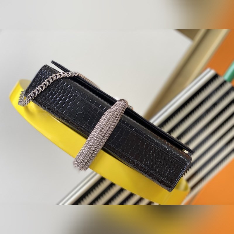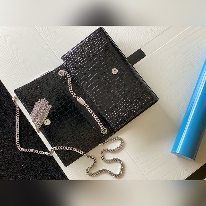 YSL 케이트 악어 무늬 체인 크로스바디 백 모델: 354119~377829 등쪽에 착용하면 악어 가죽처럼 보이기 때문에 자신감과 얼굴이 더 좋아 보입니다! 크기: 24x14.5x5.5cm