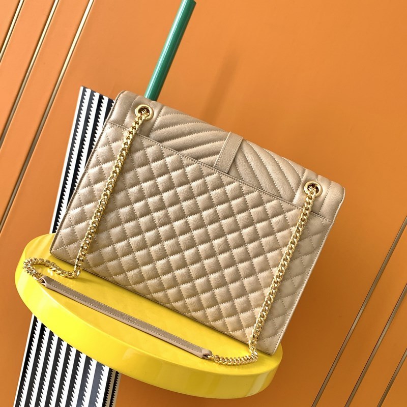 YSL ENVELOPE 큰 봉투형 가방 숄더백 모델: 487198~392740 이탈리아에서 수입한 소가죽으로 만든 최신 V자형 캐비어 패턴 가방은 내마모성이 뛰어난 캐비어 질감으로 매우 분위기 있습니다. 검은색에 금색 하드웨어가 더해진 이 가방은 매우 클래식한 느낌을 주며 어떤 스타일에도 잘 어울립니다! 어깨에 메거나 크로스 바디로 메도 멋지게 보입니다! 또한 수납 공간이 넉넉합니다! 크기: 31×22×7.5cm