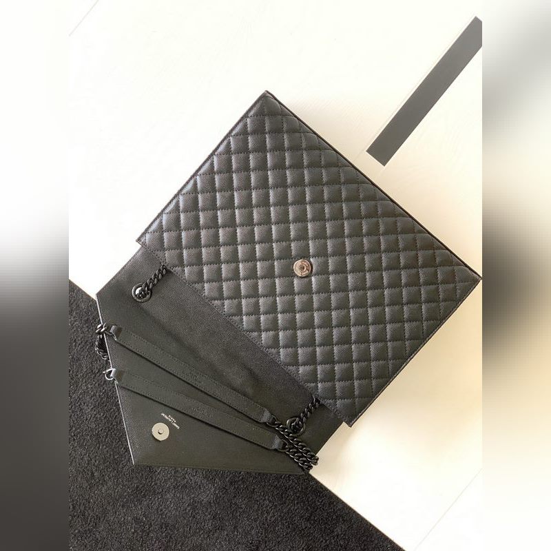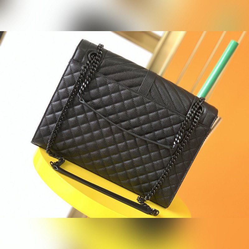 YSL ENVELOPE 큰 봉투형 가방 숄더백 모델: 487198~392740 이탈리아에서 수입한 소가죽으로 만든 최신 V자형 캐비어 패턴 가방은 내마모성이 뛰어난 캐비어 질감으로 매우 분위기 있습니다. 검은색에 금색 하드웨어가 더해진 이 가방은 매우 클래식한 느낌을 주며 어떤 스타일에도 잘 어울립니다! 어깨에 메거나 크로스 바디로 메도 멋지게 보입니다! 또한 수납 공간이 넉넉합니다! 크기: 31×22×7.5cm