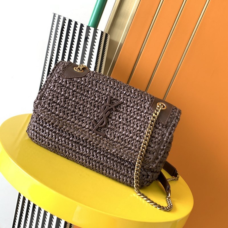 YSL NIKI 모조 라피아 크로셰와 가죽 핸드백 시리즈 품번: 498