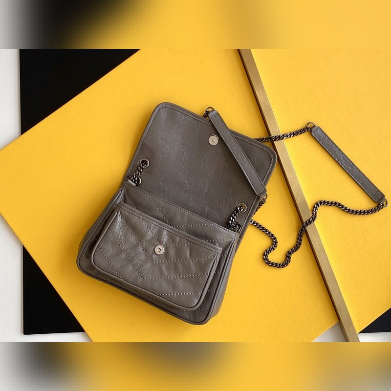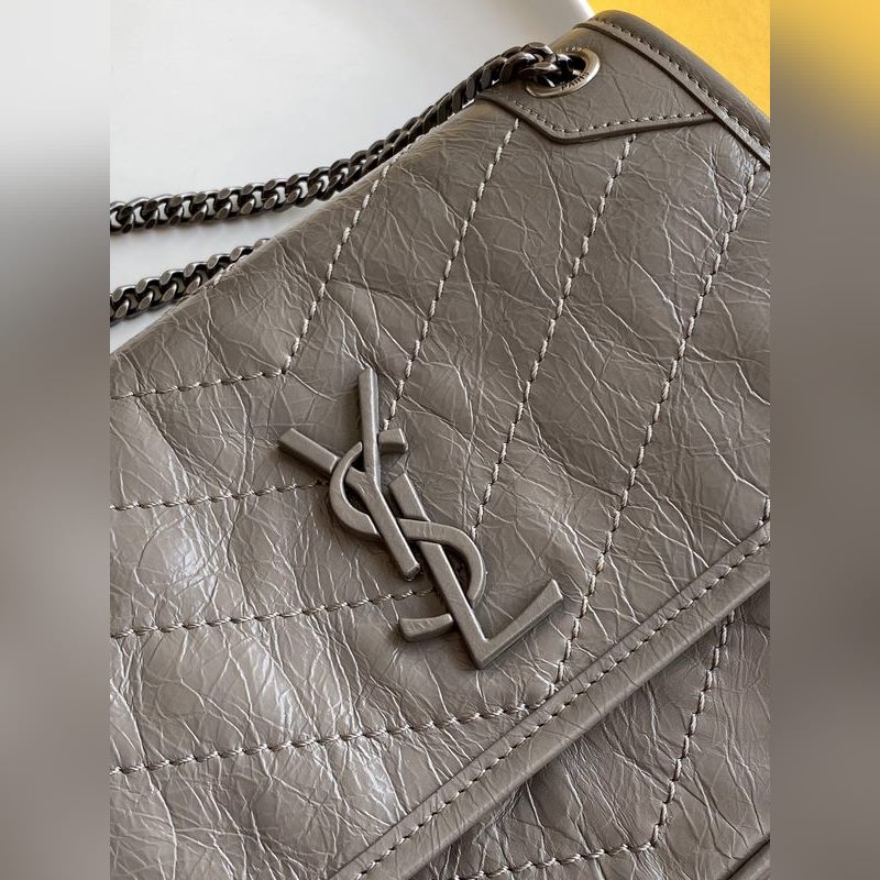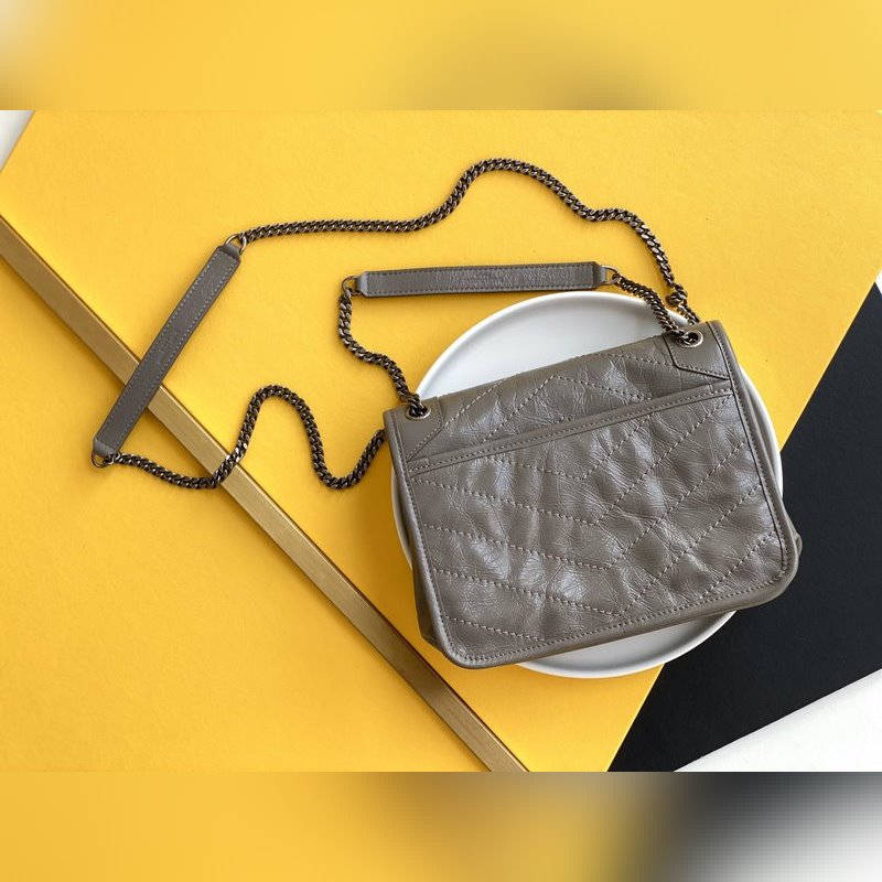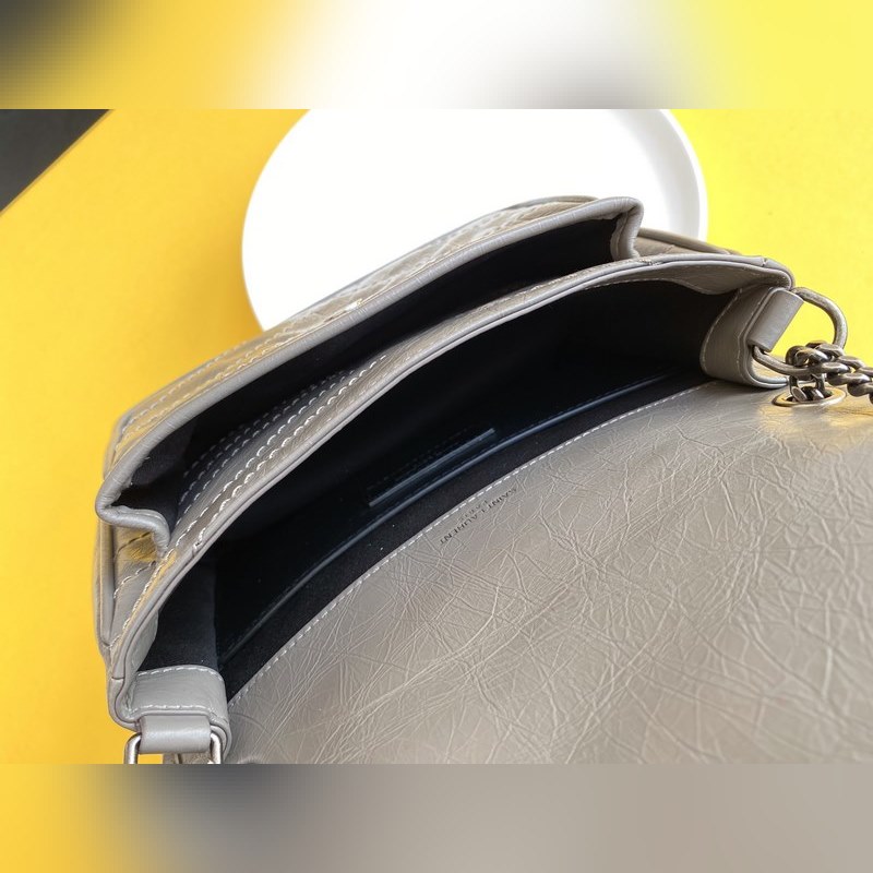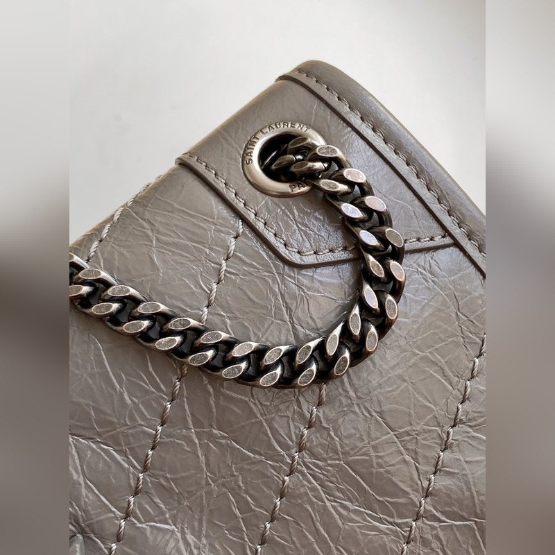 YSL 라이트 그레이 실버 체인 신형 소형 사이즈 D링 포함 최신 패키지 잡지 전집을 가지고 새로운 버전의 niki는 훨씬 더 실용적입니다. 기존 디자인에 더해 양쪽에 D링 두 개가 추가되어 한 단계 더 강화되어 더 많은 하중을 견딜 수 있게 되었습니다! 크기: 22×16.5×12cm