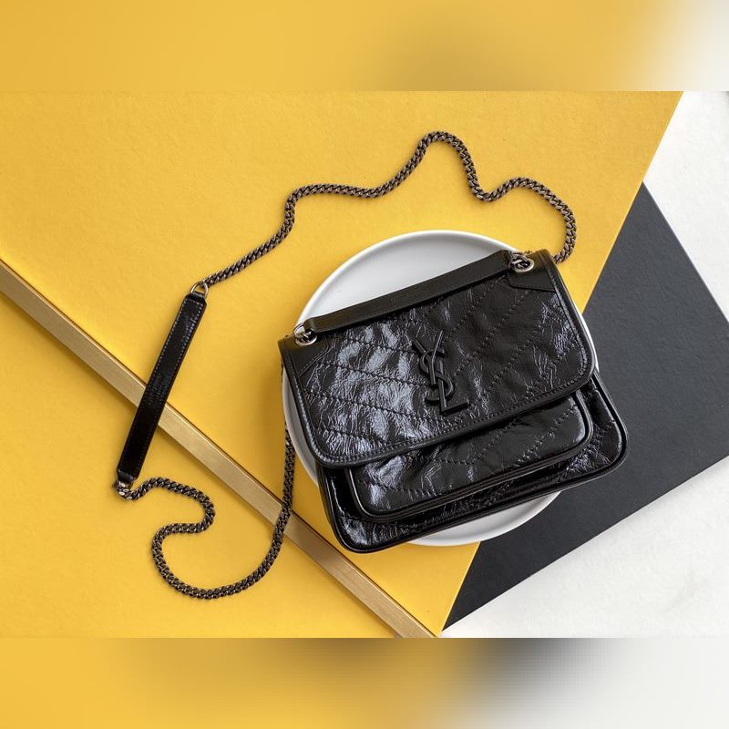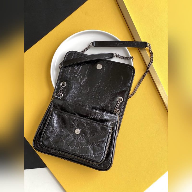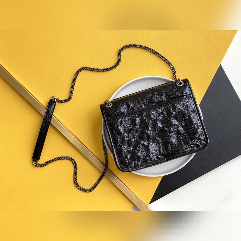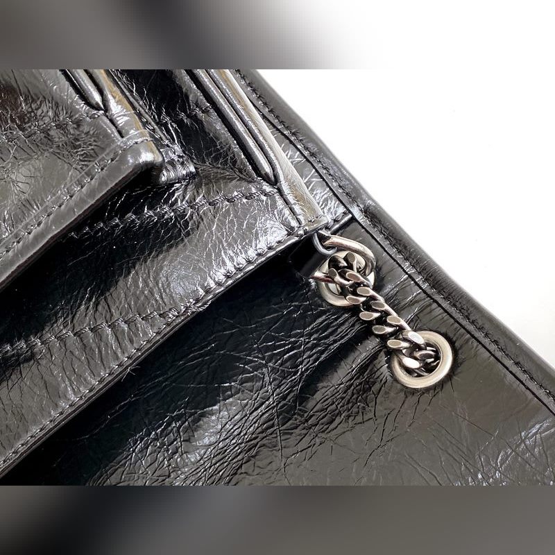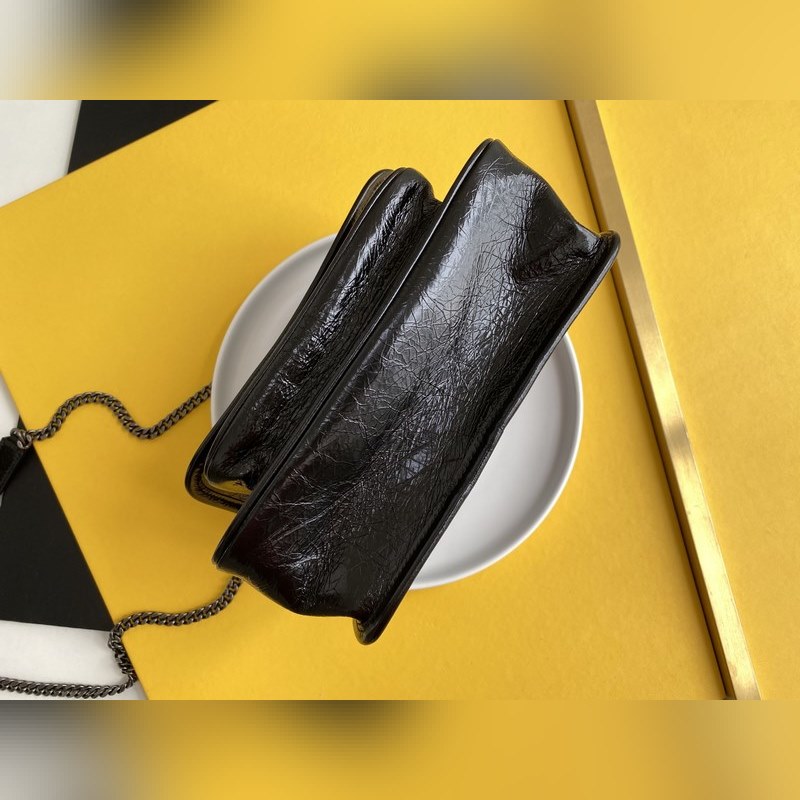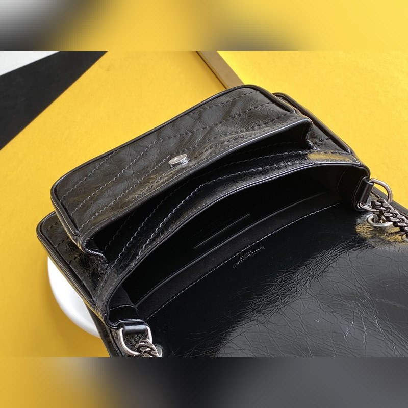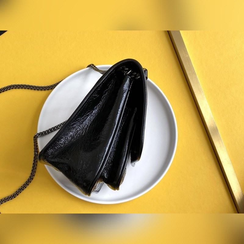 YSL 블랙 실버 체인 신제품 소형 최신 패키지 잡지 전집을 가지고 새로운 버전의 niki는 훨씬 더 실용적입니다. 기존 디자인에 더해 양쪽에 D링 두 개가 추가되어 한 단계 더 강화되어 더 많은 하중을 견딜 수 있게 되었습니다! 크기: 22×16.5×12cm