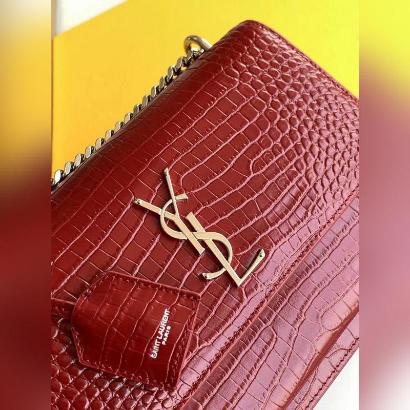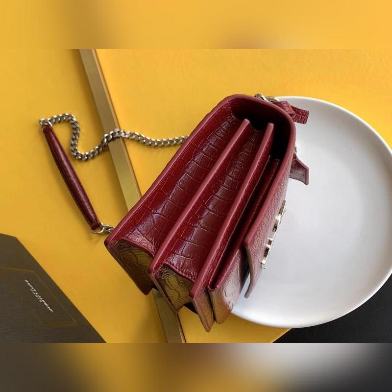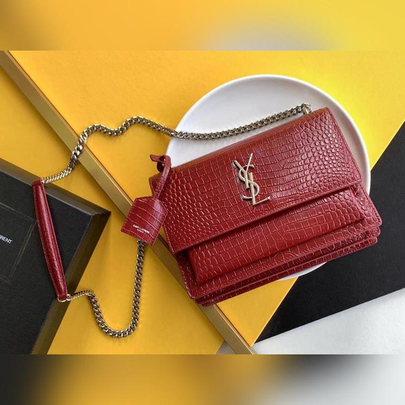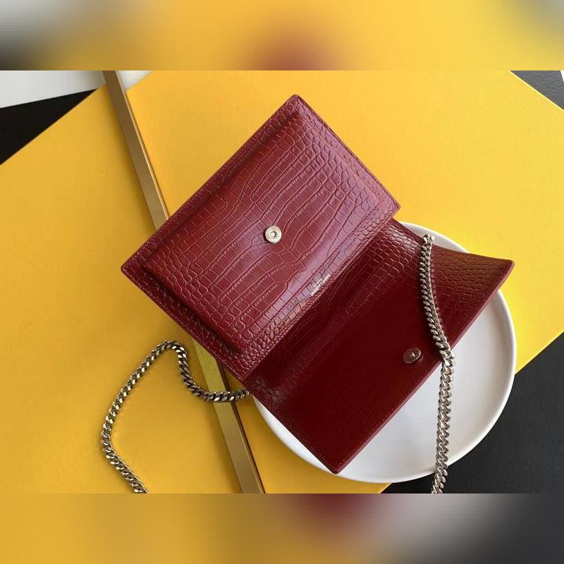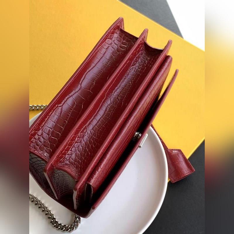 YSL 악어 SUNSET BAG 체인 크로스바디백 대형 모델: 442906 버건디 악어 가죽에 은색 버클 또 다른 YSL 히트 상품이 출시되었습니다. 수입된 악어 무늬 소가죽에 앤티크 실버 도금 하드웨어를 더한 제품입니다. 시선을 사로잡는 스트리트 스타일 필수 아이템입니다. 뛰어난 기품과 실용성을 갖춘 클래식한 모델로 스타일리시한 외모와 패션 감각을 높여줄 것입니다. 크기: 22×16×8cm