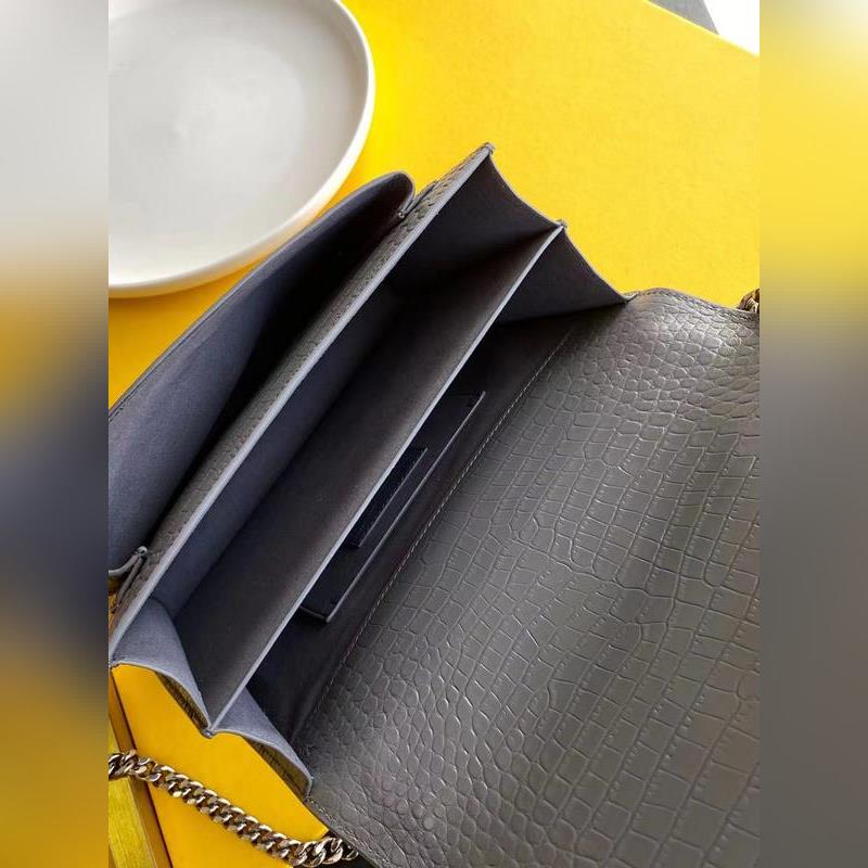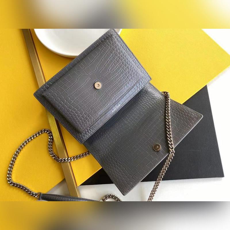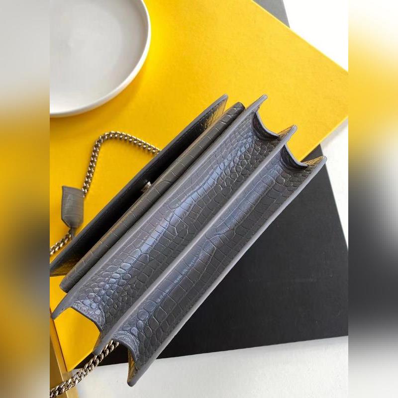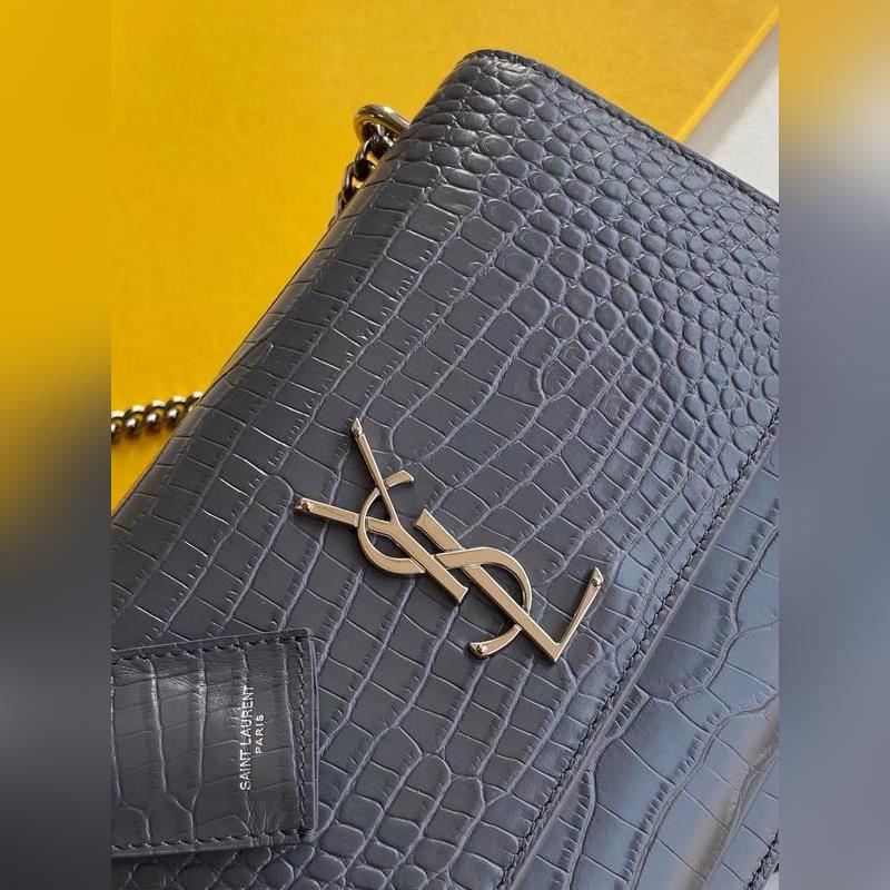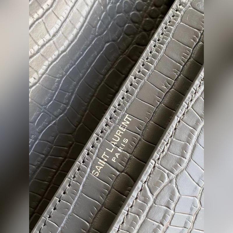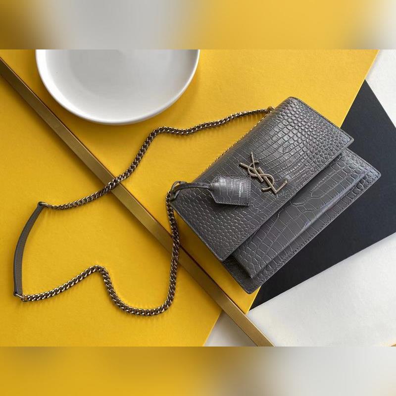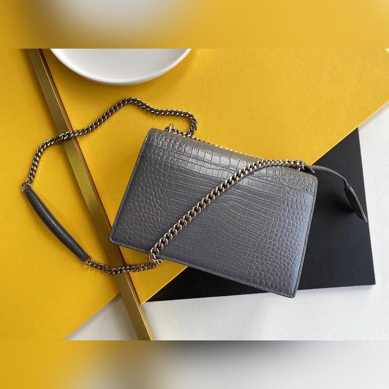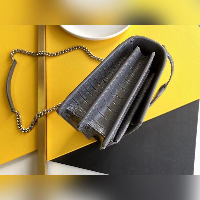 YSL 크로커다일 선셋 백 체인 크로스바디 백 대형 모델: 442906 회색 악어 금 버클 또 다른 YSL 베스트셀러가 출시되었습니다. 수입된 악어 무늬 소가죽에 앤티크 실버 도금 하드웨어를 더한 제품입니다. 시선을 사로잡고 스타일리시한 룩을 연출하는 스트리트 스타일 필수 아이템입니다. 크기: 22×16×8cm