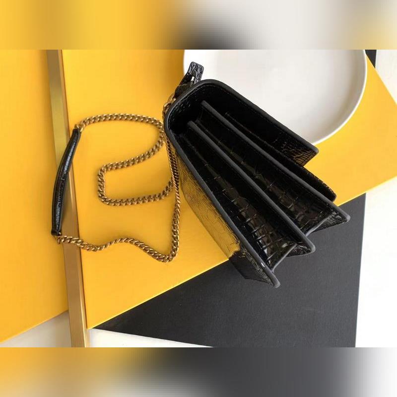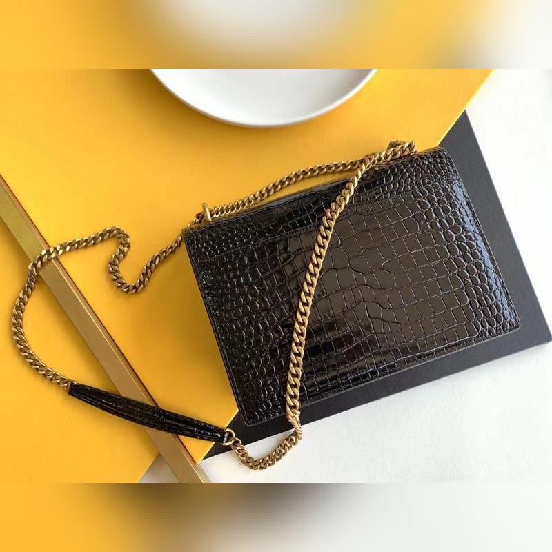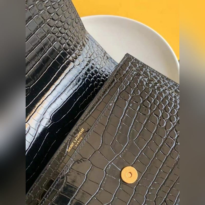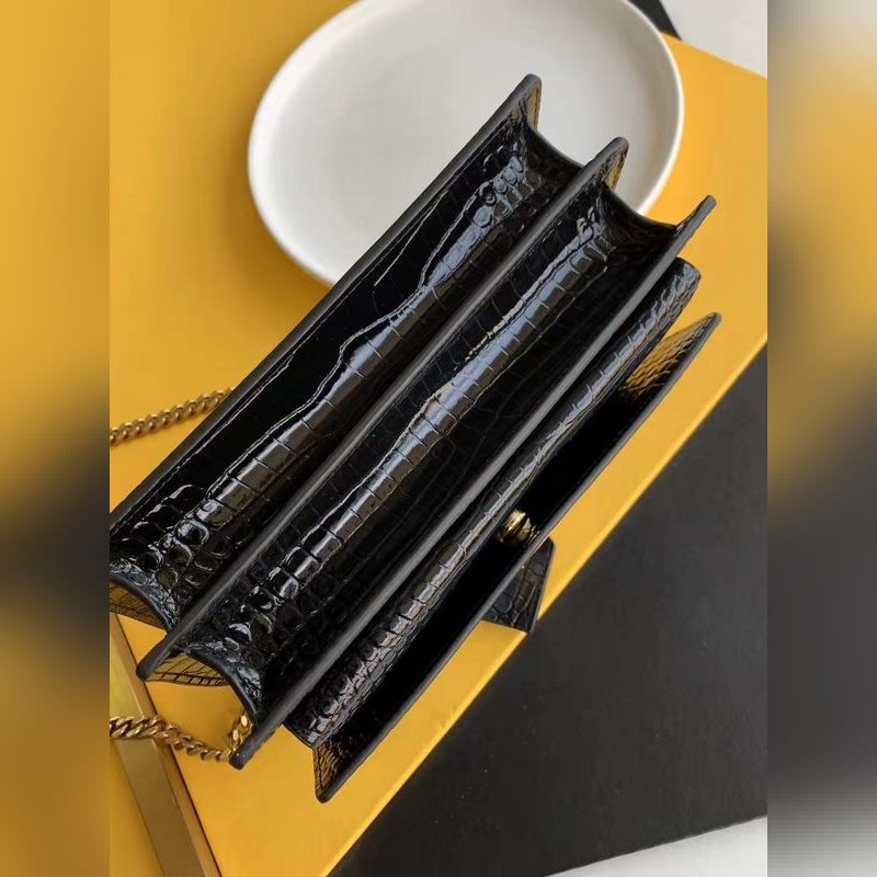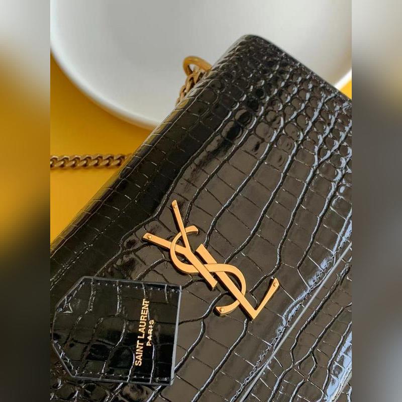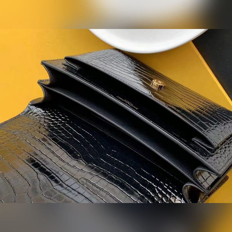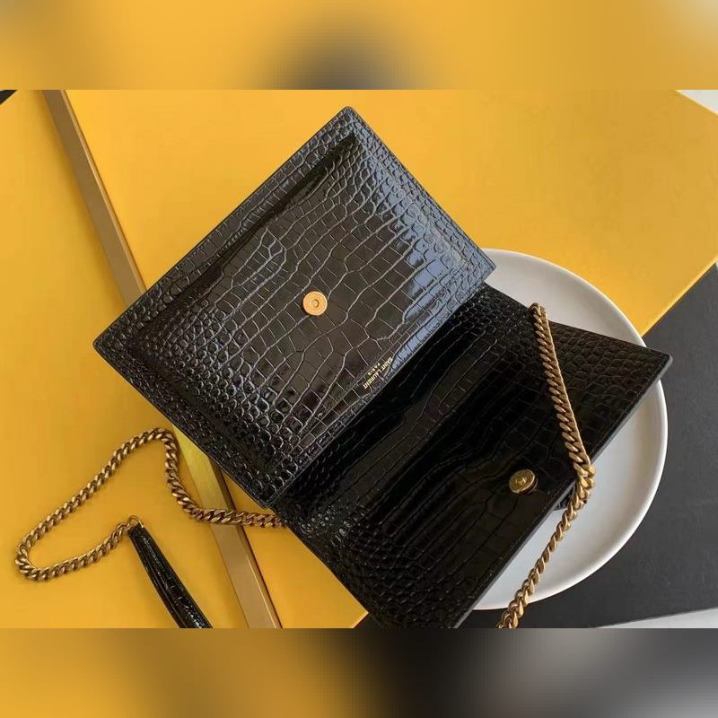 YSL 크로커다일 선셋 백 체인 크로스바디 백 대형 모델: 442906 블랙 악어 골드 버클 또 다른 YSL 폭발 모델이 시장에 출시되었습니다. 진공 도금된 앤티크 실버 하드웨어가 있는 수입 악어 무늬 소가죽. 시선을 사로잡고 스타일리시한 느낌을 주는 스트리트 스타일 머스트 해브 아이템. 뛰어난 기질을 지닌 실용적이고 클래식한 모델. 크기: 22×16×8cm
