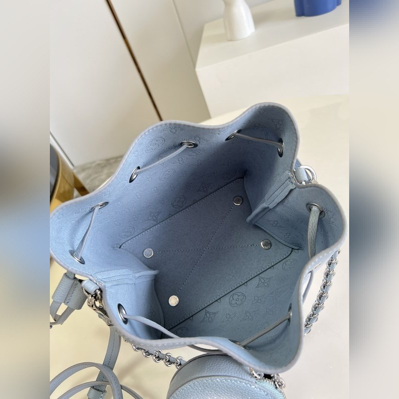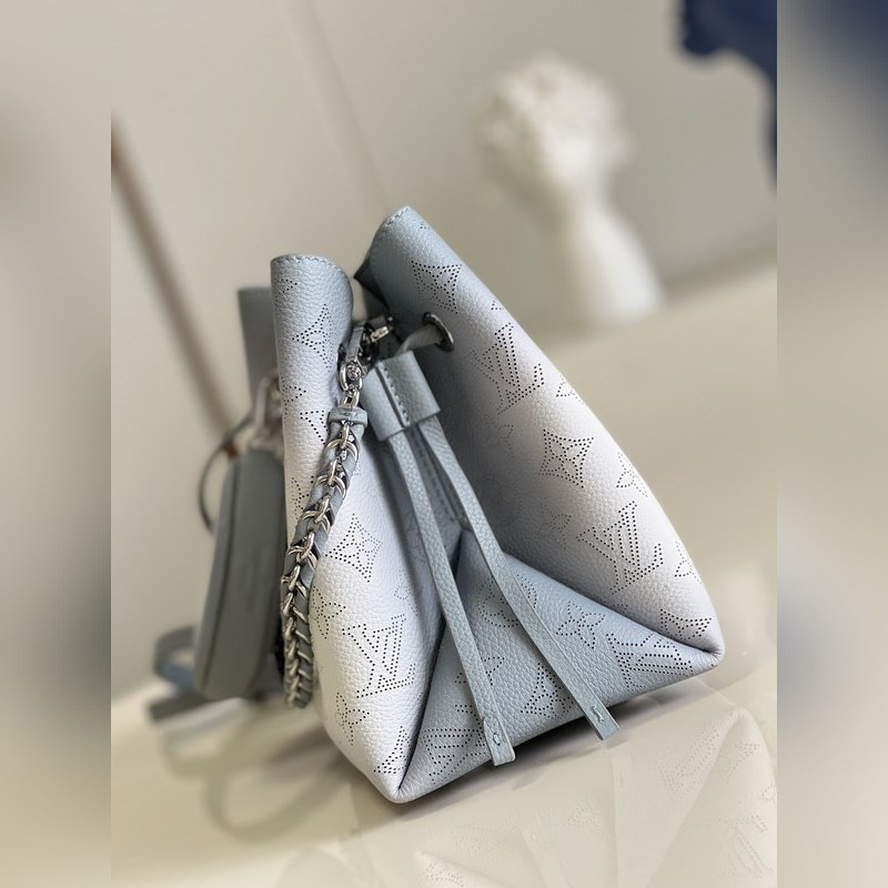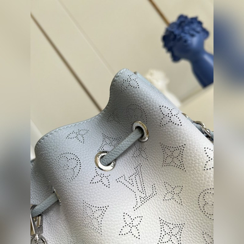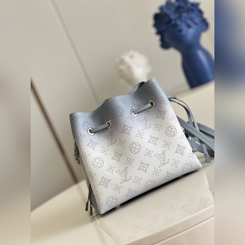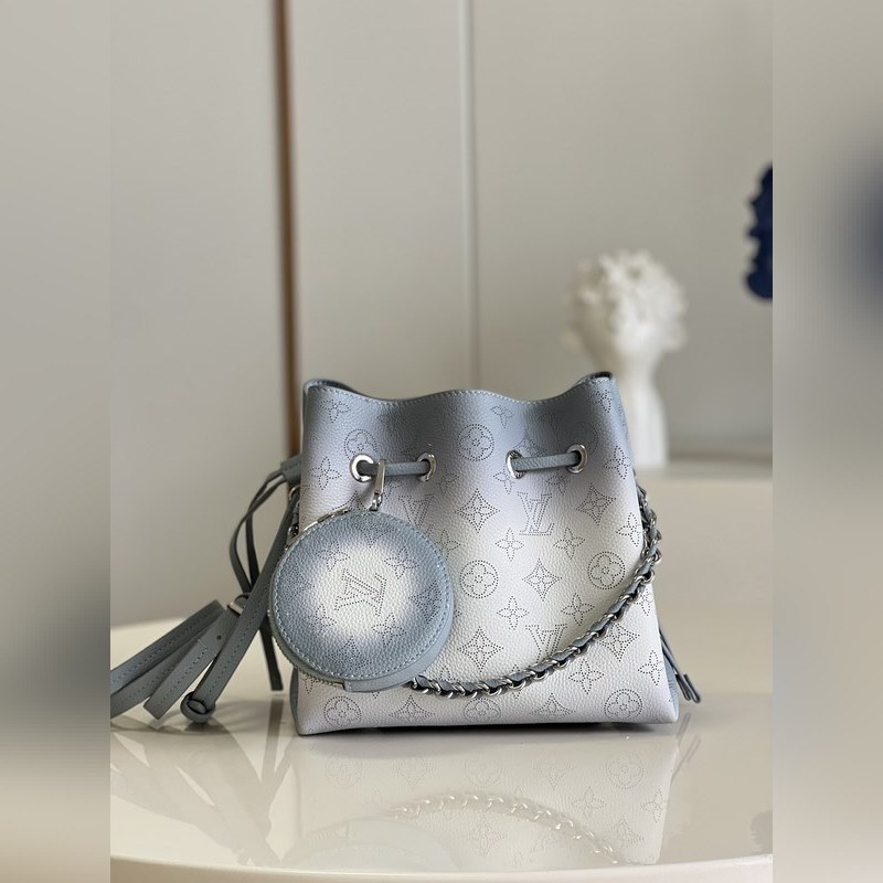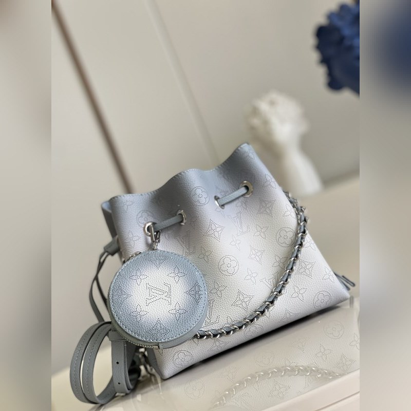 LV 벨라 버킷백 숄더백 모델 M20507 이 벨라 버킷 백은 모노그램 퍼포레이티드 송아지 가죽으로 만들어졌으며 위에서 아래로 그라데이션 색상을 보여줍니다. 같은 소재로 만든 탈착식 동전 지갑은 초여름의 느낌을 더해줍니다. 크기: 19 x 22 x 14cm