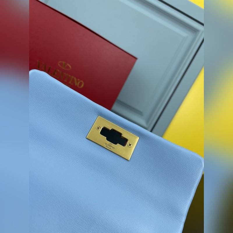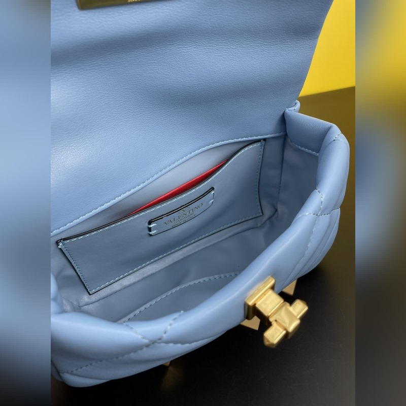 발렌티노 가라바니 로마 스터드 스몰 나파 가죽 체인 백 오버사이즈 스터드 탈착식 핸들 슬라이딩 체인 트림이 있는 퀼팅 구조로 크로스 바디 숄더백 또는 클러치로 착용할 수 있습니다. 퀼팅 나파 가죽에 톤온톤 퀼팅으로 프리즘 패턴을 강조 - 빈티지 브라스 효과 마감 - 건메탈 컬러의 금속 스터드와 피팅 - 턴락 잠금장치 - 나파 가죽 내부: 지퍼 포켓 크기 20-12-7cm