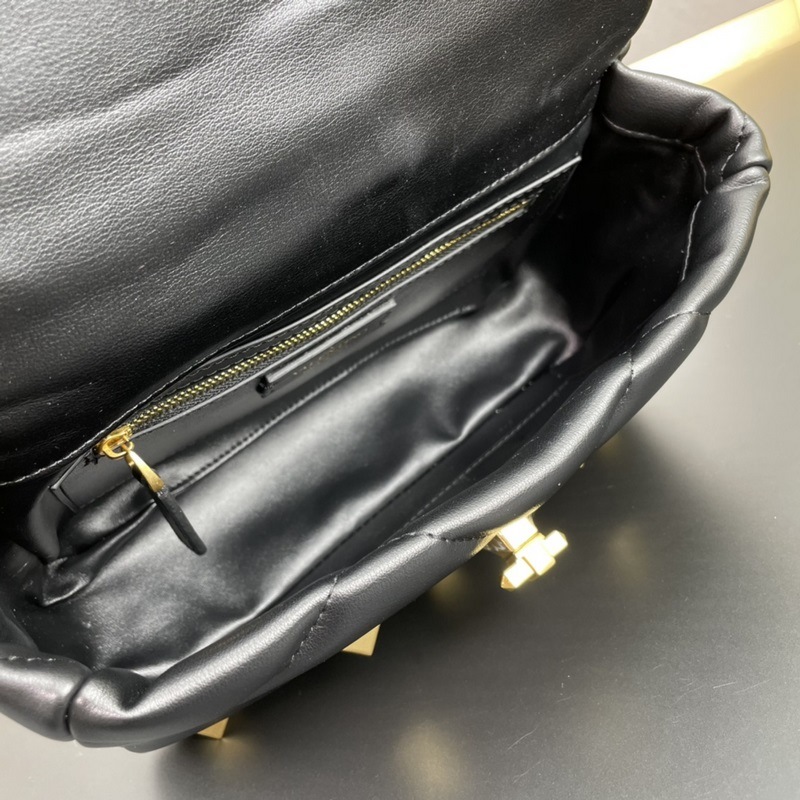 발렌티노 가라바니 로마 스터드 스몰 나파 가죽 체인 백 스터드 오버사이즈 스터드 탈착식 핸들 슬라이딩 체인 트림이 있는 퀼팅 구조로 크로스 바디/어깨에 메거나 손으로 들 수 있습니다. - 퀼팅 나파 가죽에 톤을 맞춘 퀼팅으로 프리즘 패턴을 강조합니다. - 빈티지한 황동 효과를 내는 건메탈 마감의 금속 스터드와 하드웨어 - 트위스트 락 잠금장치 - 나파 가죽 내부: 지퍼 포켓 작은 사이즈: W 25 x H 16 x D 10cm 대형 사이즈: 가로 30 x 세로 20 x 높이 12cm
